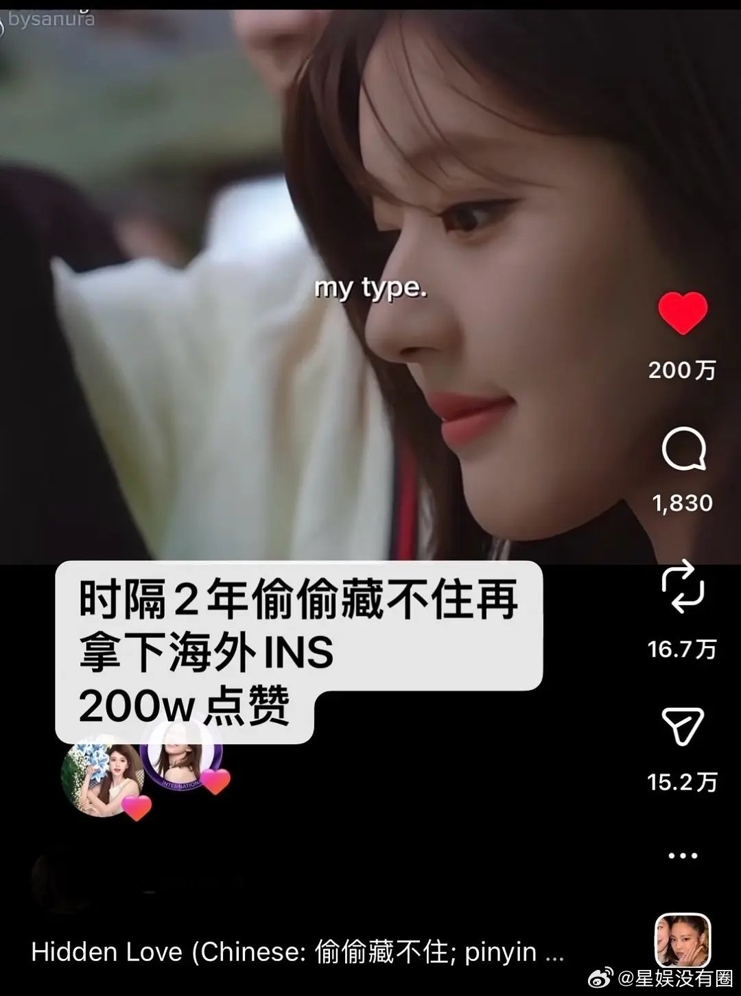 海外大爆剧赵露思的偷偷藏不住时隔两年ig点赞2天破百万,10天200w点赞