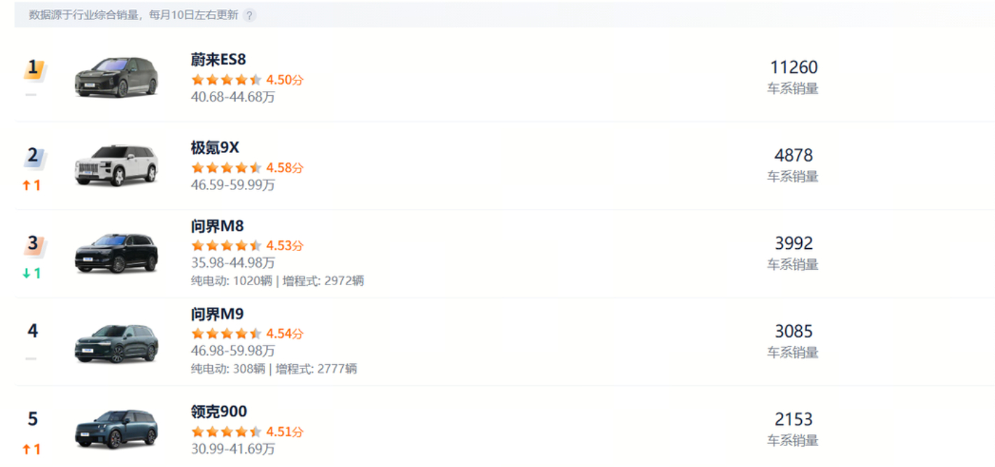 181 天,80000 台。今天在杭州绍兴路汽车城,全新 ES8 迎来了第 80000 位车主。从第一台到第八万台,这台车只用了不到六个月。有些数字挺有意思:-2 月卖了 11260 台,大型 SUV 和 40 万元以上车型两个榜单,它都是第一-全国 69 座城市的大型 SUV 市场,它排在榜首-长三角地区每卖出两台大型 SUV,就有一台是它-在北方 12 个直辖市和核心省会城市,它也是第一更值得一提的是,在大三排 SUV 这个细分市场,全新 ES8 领跑所有能源形式——不管是纯电、燃油、插混还是增程。蔚来ES8还能创造多少大型SUV的销量奇迹?让我们拭目以待!蔚来