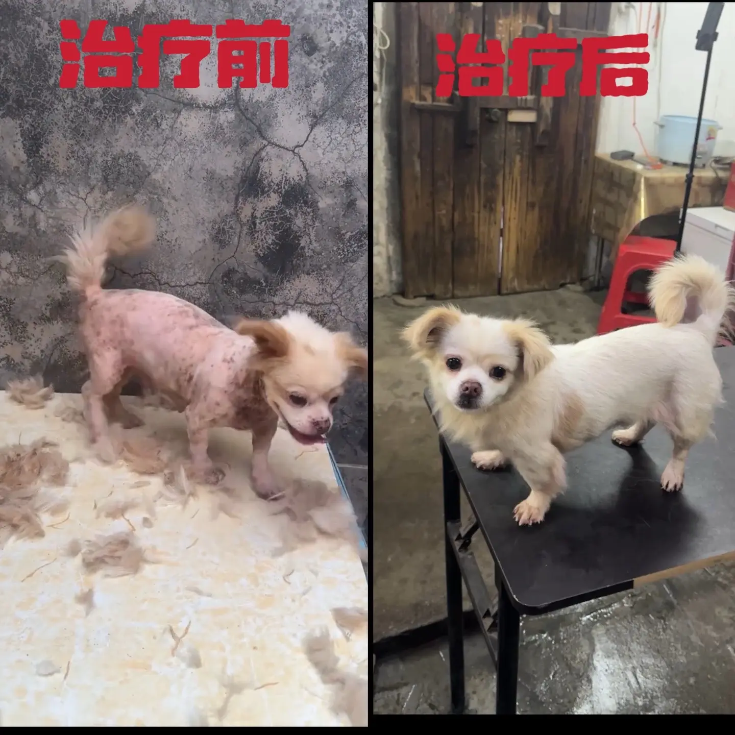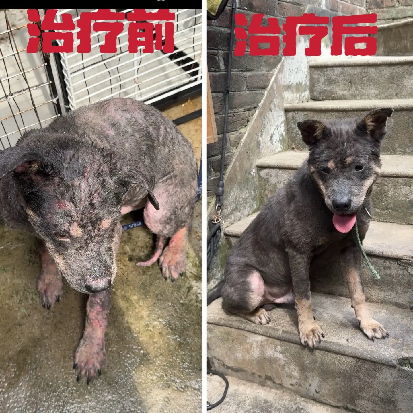这些我们也救助了几十个无家可归的流浪毛孩子,我发现被主人抛弃的毛孩子大多数都是因为皮肤病问题,其实皮肤病并不可怕,自己在家里也可以治疗好的,只要有耐心和坚持才能治好,家里狗狗有皮肤问题,也可以咨询我们治疗方案,这是我们自己在家治好了一部分,治疗前以治疗后的对比