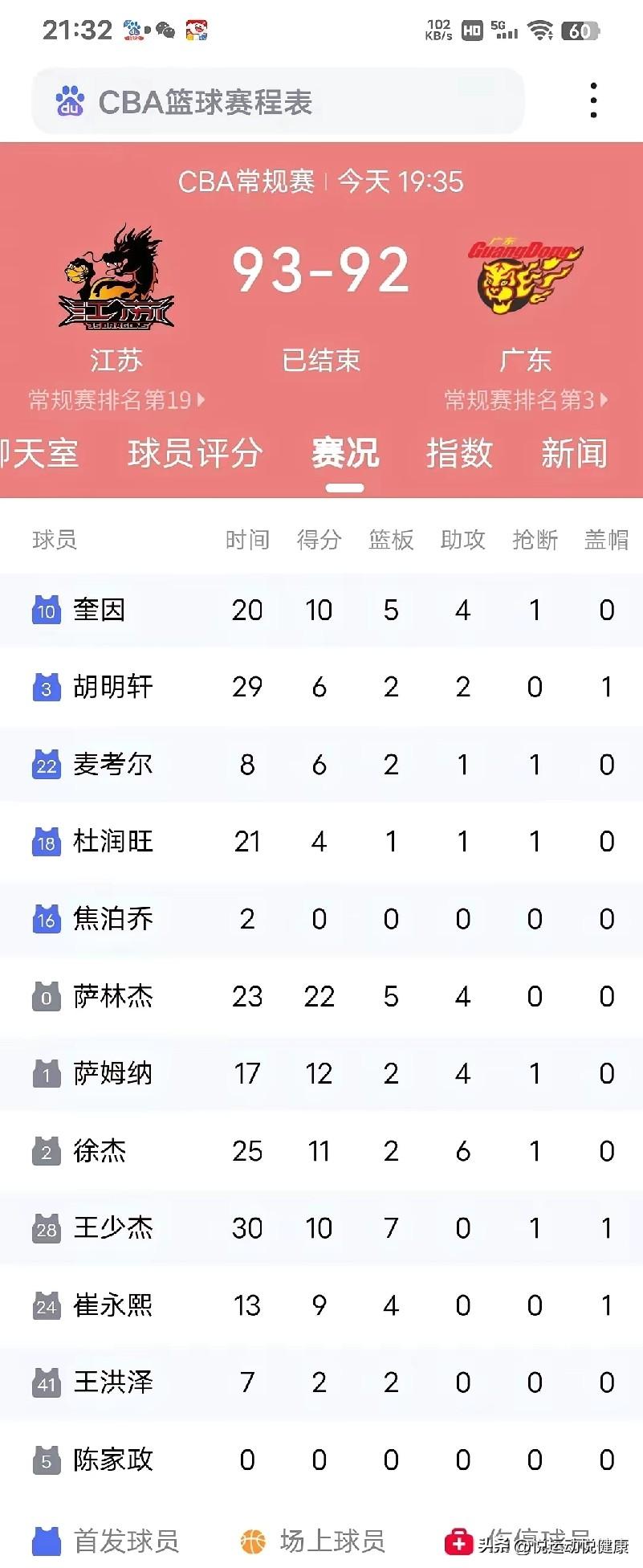 广东被倒数第二江苏绝杀!这四人就是输球罪魁祸首! 我的天!广东男篮这是打的什么球?被常规赛倒数第二的江苏1分绝杀,92:93输得太窝囊了! 作为十一冠王,打成这样真的没法看! 现场看球的、守着直播的球迷,估计都跟我一样气得不行!全场比赛广东就没领先过几次,一直被江苏压着打,最后时刻惨遭绝杀,这口锅,这四个人绝对跑不了! 先说杜锋,作为主教练,这场打得太轻敌了吧!前两节不好好稳阵容,瞎试搭配,奎因、胡明轩、麦考尔来回换着控球,球队节奏直接乱成一锅粥。胡明轩、杜润旺状态明明不行,还死用那么长时间,徐杰刚找回状态就给摁板凳上,这用人操作真的看不懂,输球他首当其冲有责任! 再看胡明轩,打了29分钟,7投才中2个,就拿6分2篮板2助攻,直接被对方的庞峥麟打爆了,攻防两端一点存在感都没有。杜润旺更拉胯,21分钟拿4分,防守跟纸糊的一样,除了犯规就是给对手送分,完全帮不上球队。 还有外援奎因,出手权不少,20分钟扔了10个球,就进4个,三分球5中1,拿10分,大把球权全给浪费了,进攻端一点效率都没有! 江苏队都是倒数第二的队伍了,还能全场压着广东打,这已经不是状态起伏的事了!再这么打下去,杜锋的帅位真的危险,广东球迷的心都凉透了!