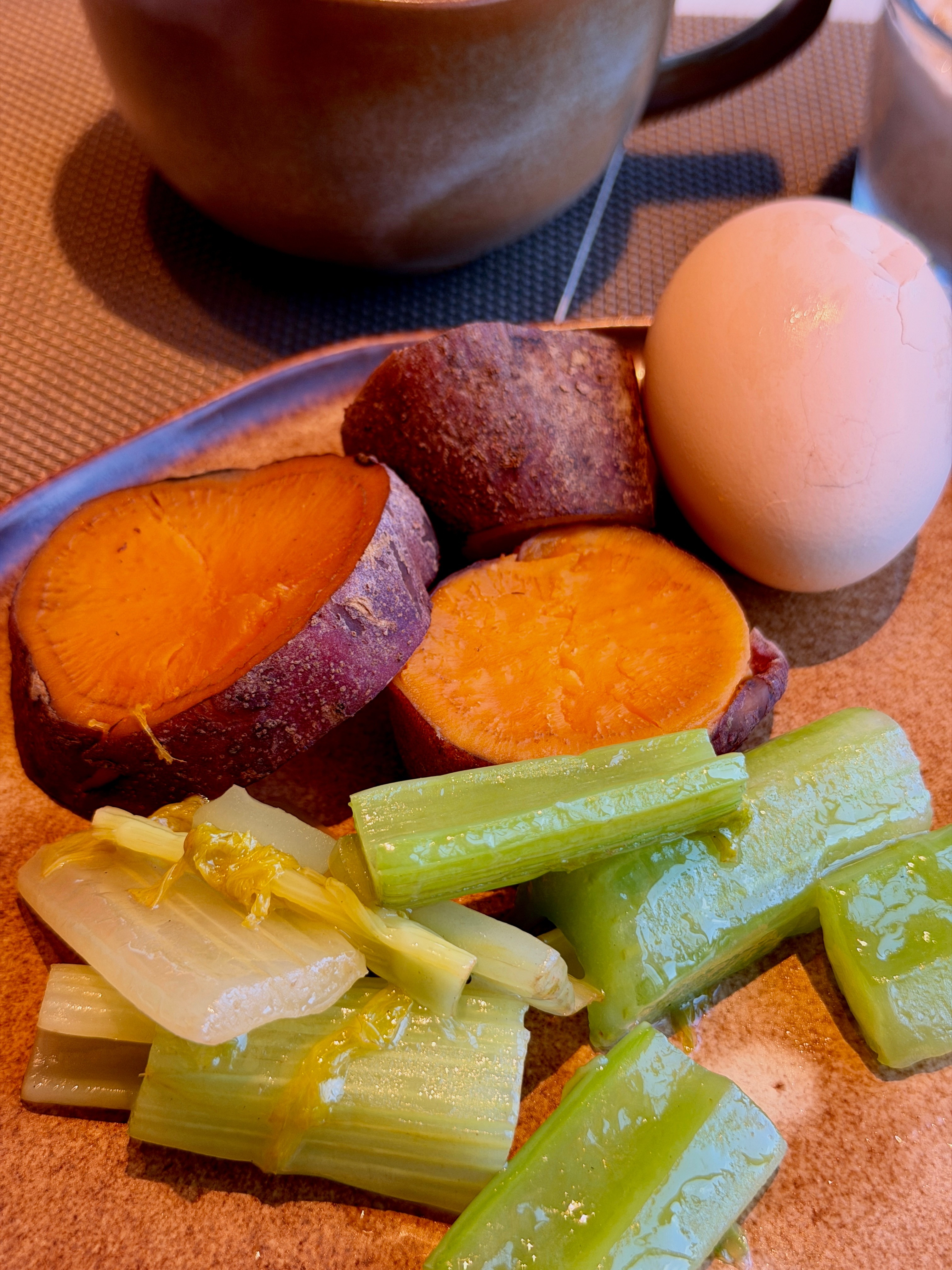 早我的抗炎饮食早餐!红薯🍠-水煮蛋-芹菜-燕麦-蓝莓🫐-绿茶上海