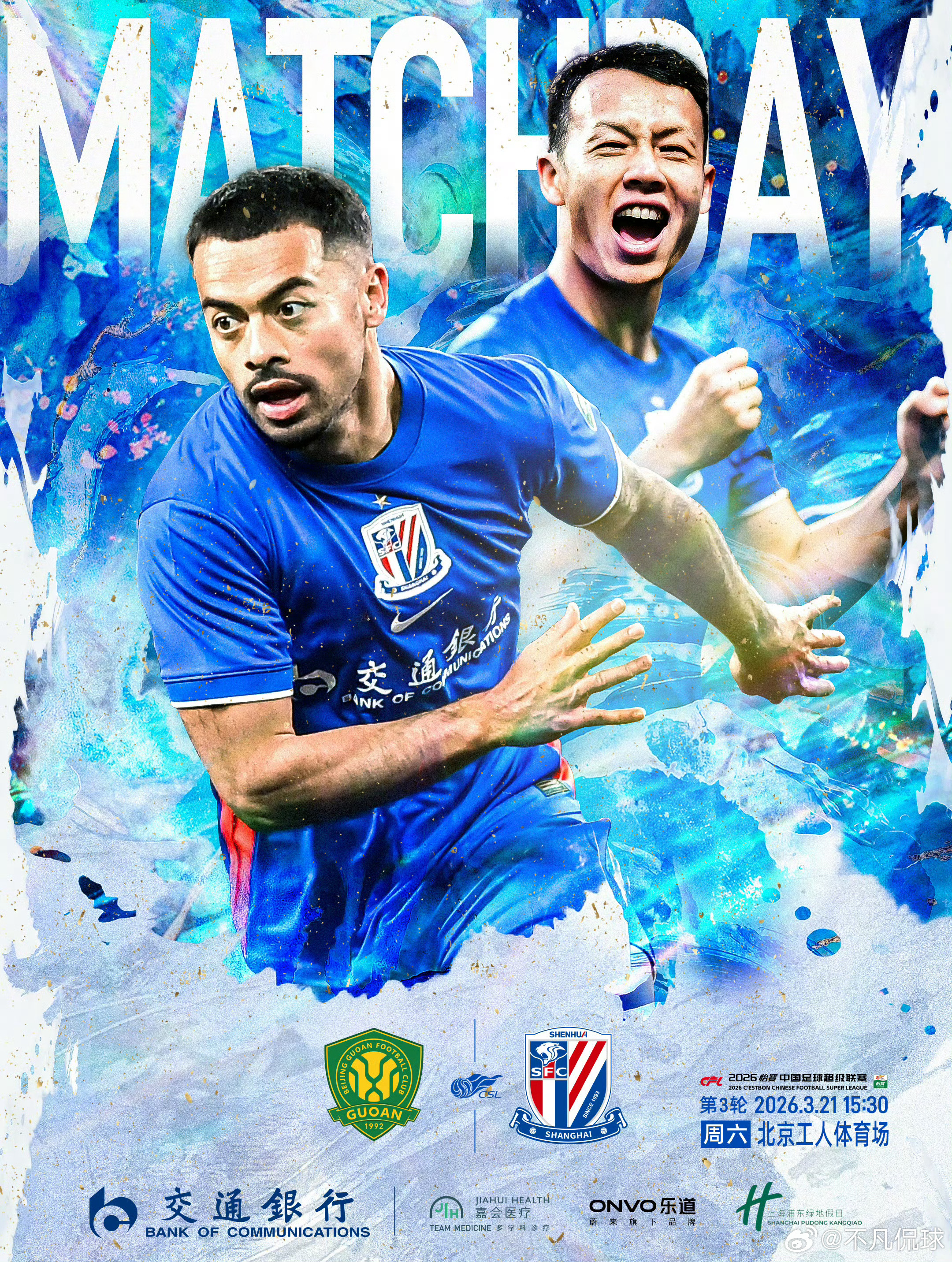 上海申花上海申花vs北京国安,主裁判马宁,VAR贺凯。上海申花