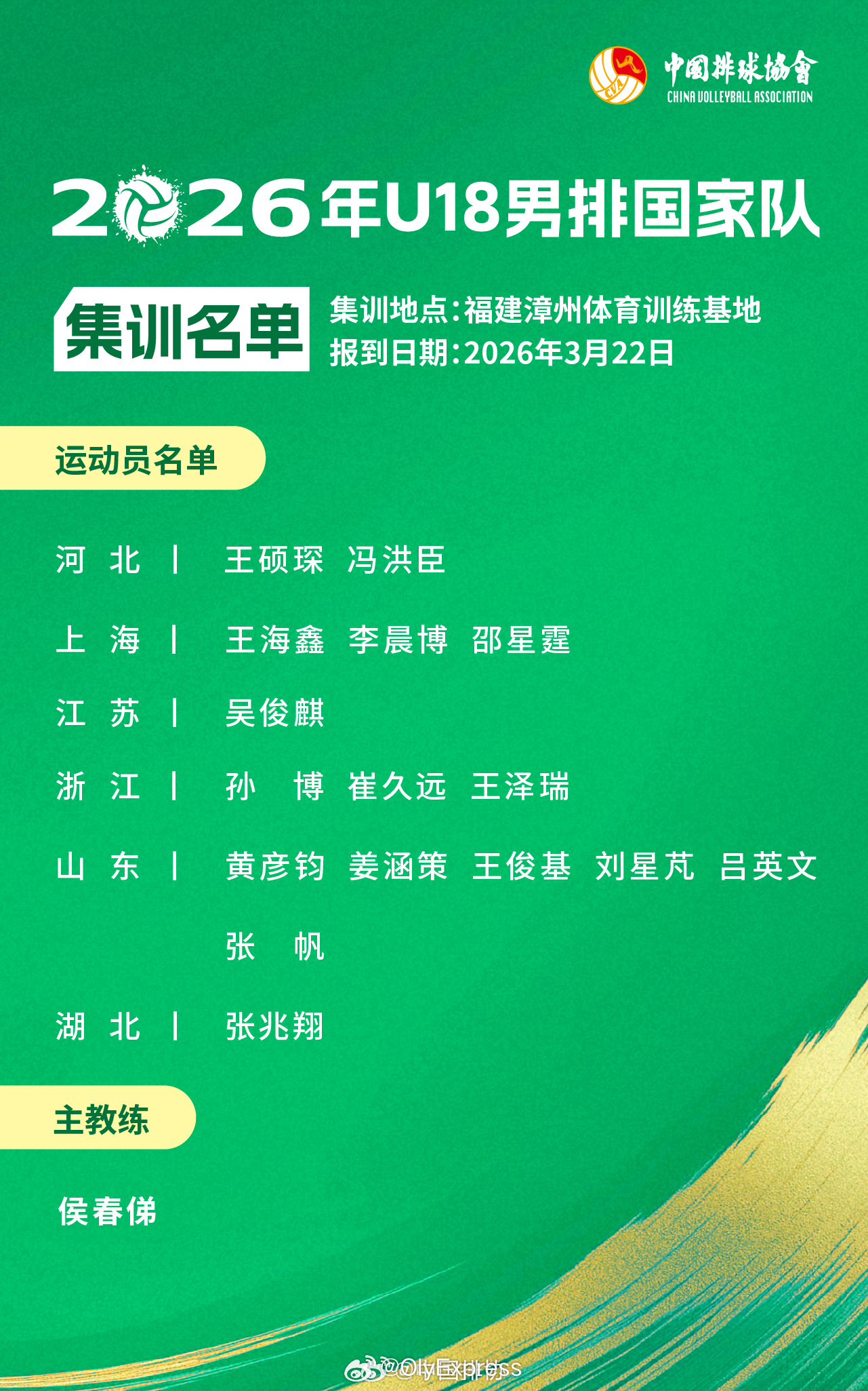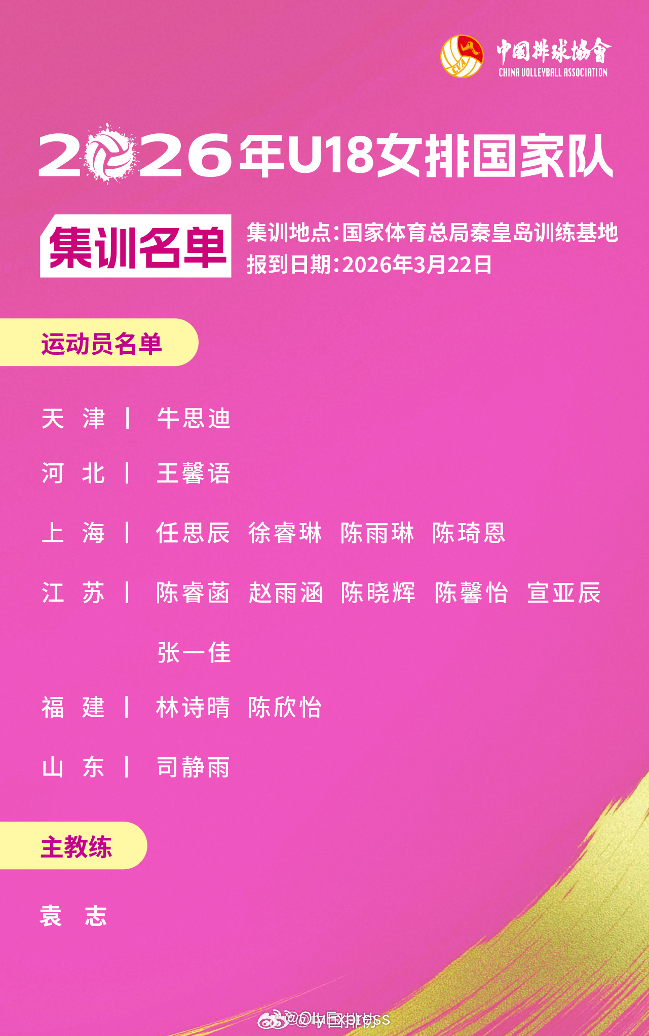 中国男排中国女排3月21日,中国排协公布了U18男排、U18女排和U17女排集