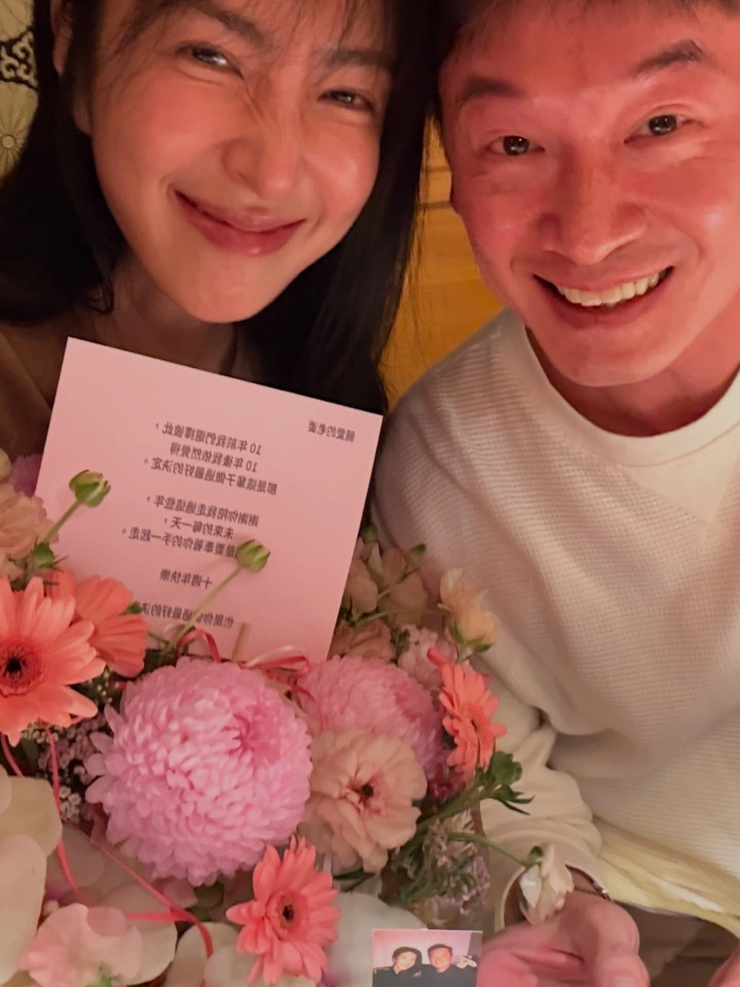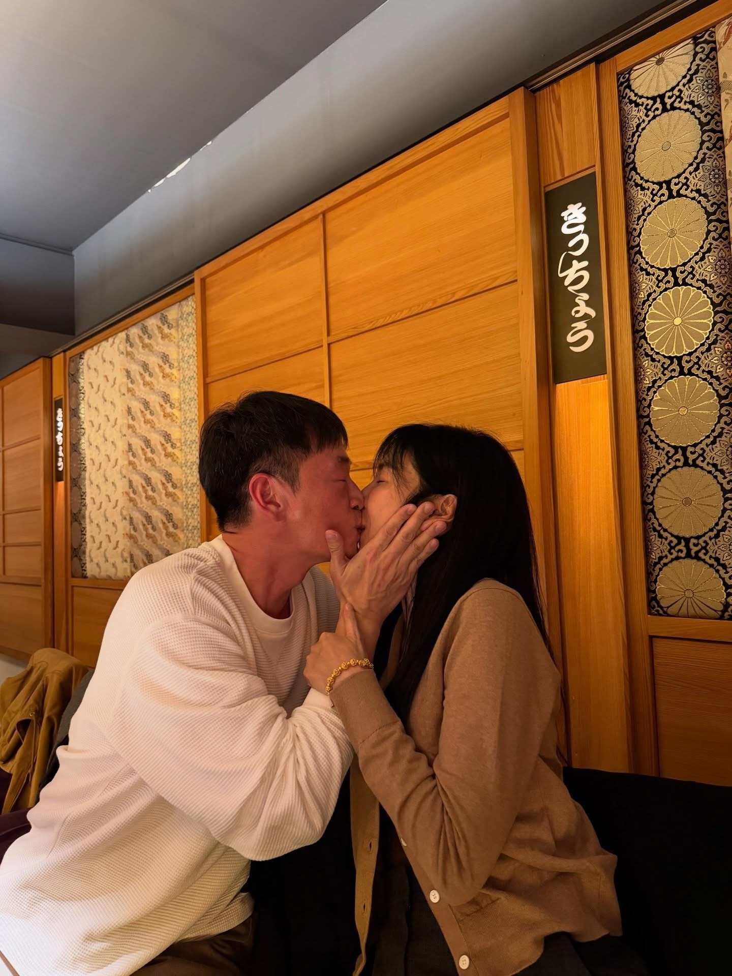 杨谨华与老公Ben甜蜜接吻迎接结婚十周年