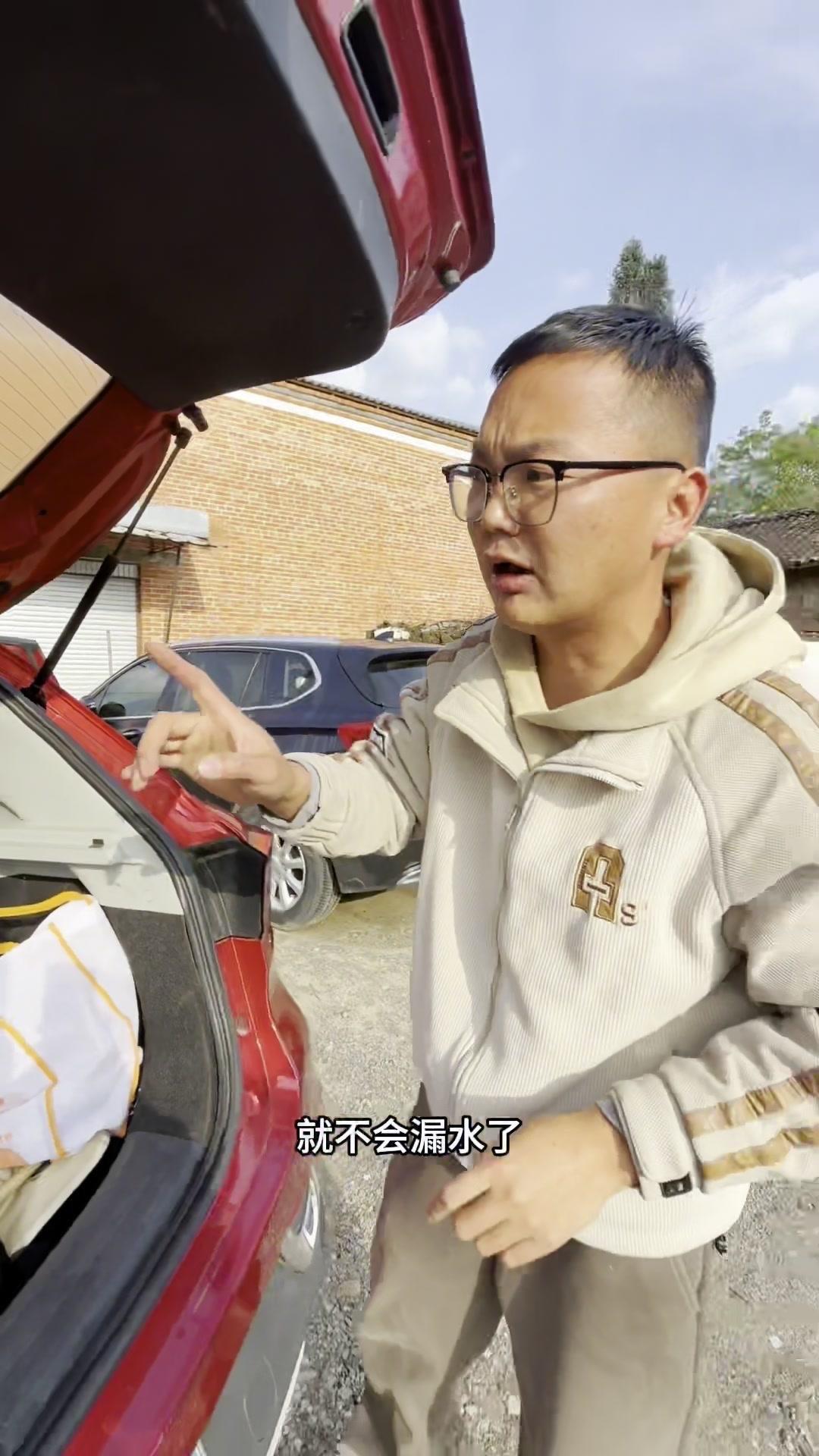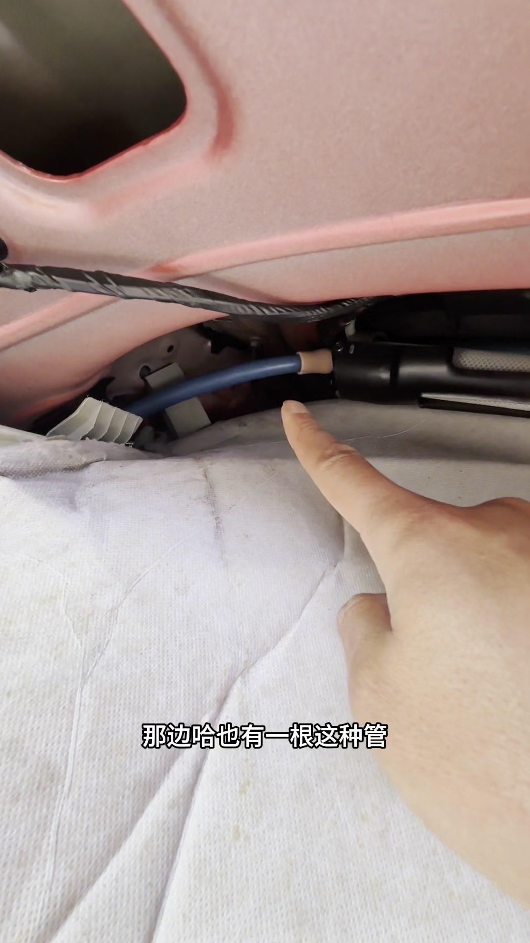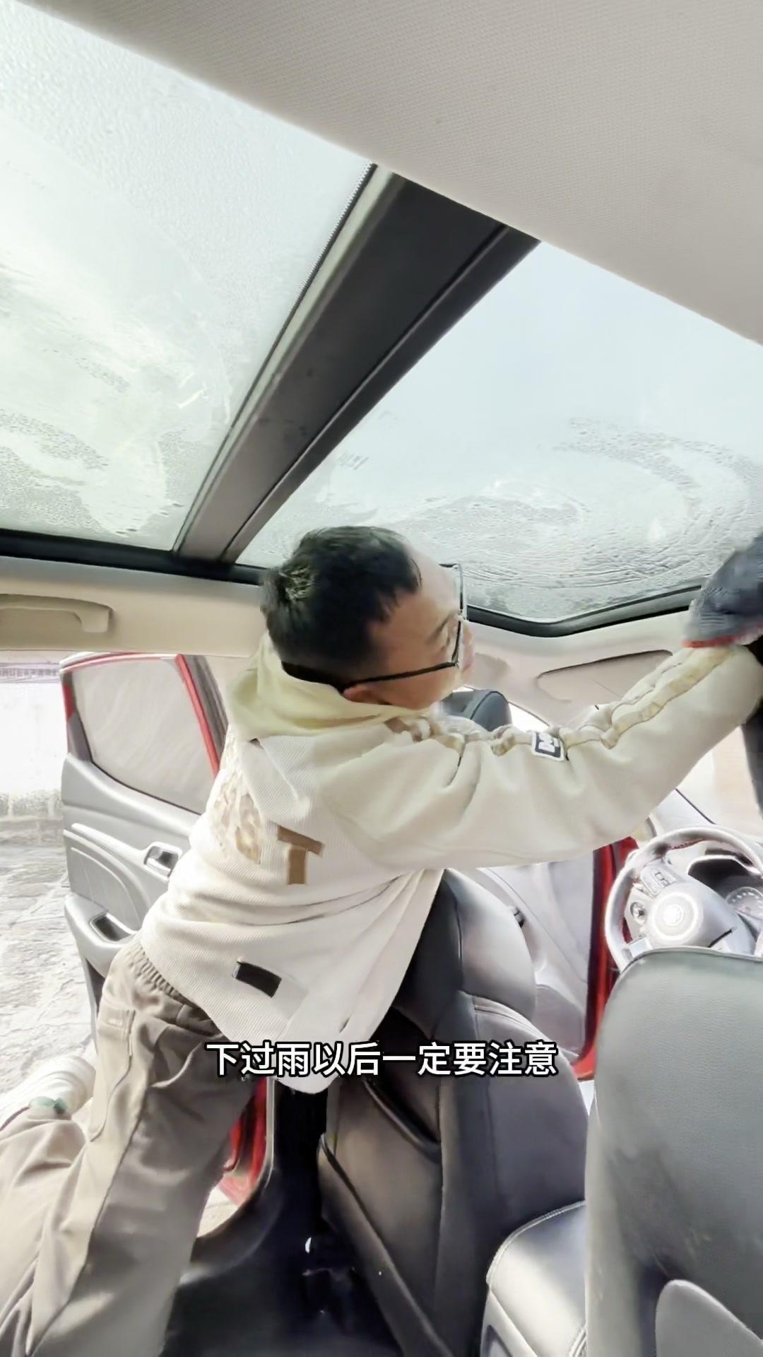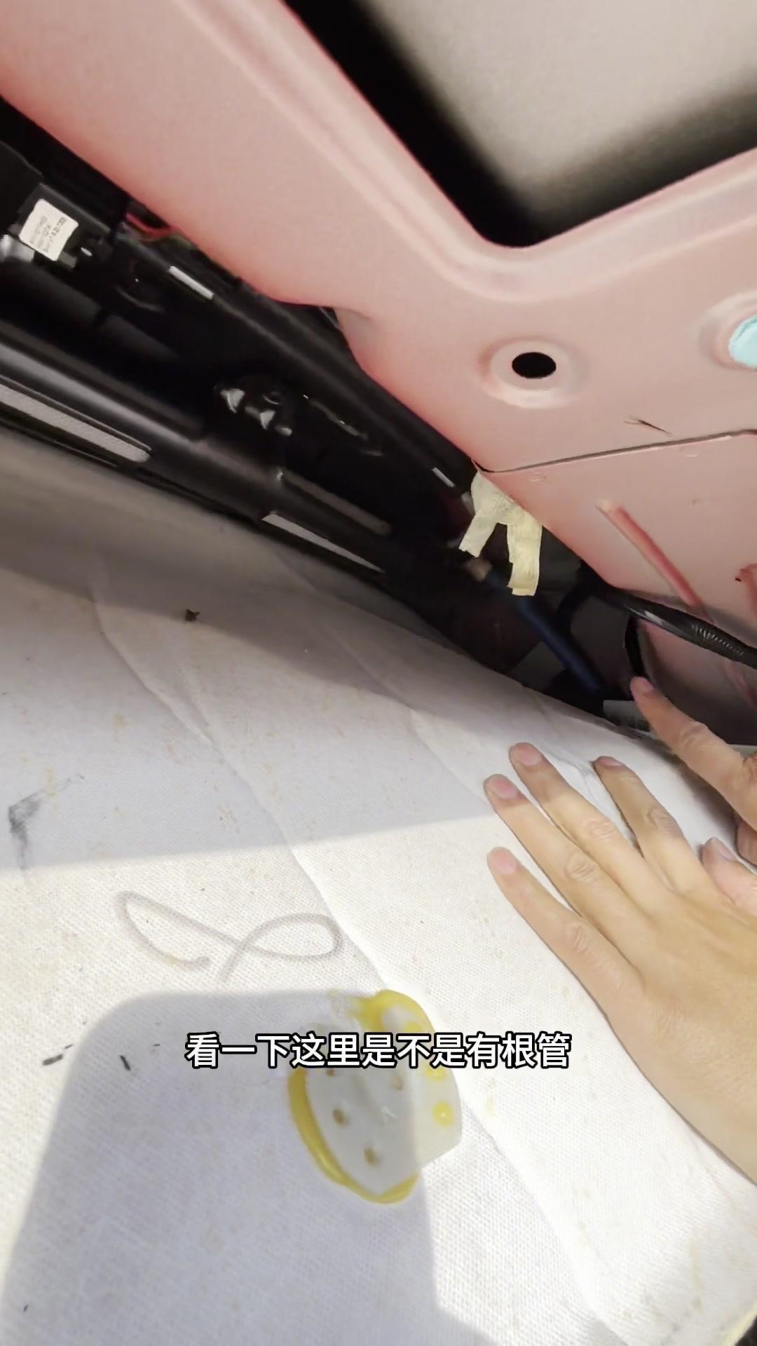 早上开车发现前挡风玻璃全是水,别慌!尤其是有天窗的车,大概率是漏水了。 先检查座位下和车门,没水的话抬头看,水会从顶棚哗哗往下流——这就是天窗排水管松了或堵了! 接着处理:打开后备箱,找到两侧的排水管,检查是否有异物堵塞或松动。我的车就是排水管松了,把它重新插紧。如果买新车就用胶把管口粘紧,能预防漏水。 这样处理后,下次下雨就不会再漏水啦!