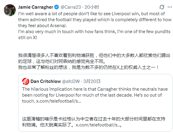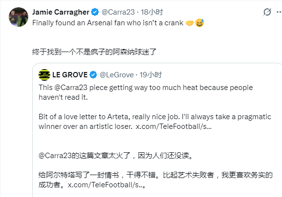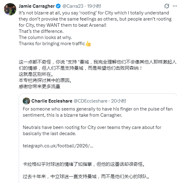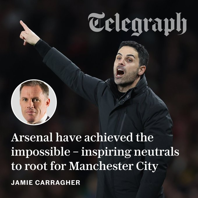 他写道: 阿森纳完成了不可能的事——让中立球迷转而支持曼城👀