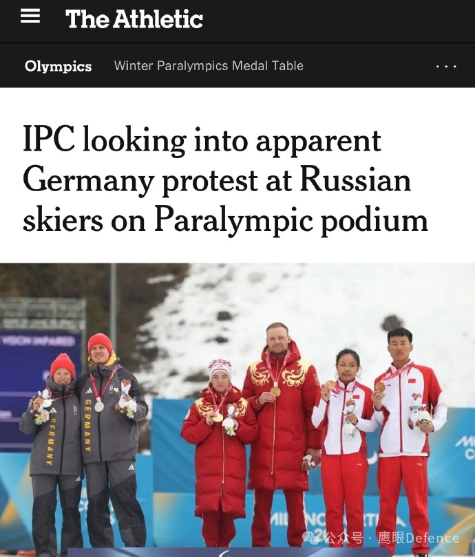 在冬残奥会短距离盲人组越野滑雪项目中,俄罗斯运动员阿纳斯塔西娅·巴基扬获得金牌,在升起俄罗斯国旗、奏响俄罗斯国歌时,获得银牌的德国运动员林恩·卡茨迈尔及其引导员弗洛里安·鲍曼在领奖台上远离俄罗斯运动员,拒绝与代表侵略国的运动员握手和合影自拍,转身背对俄罗斯人。