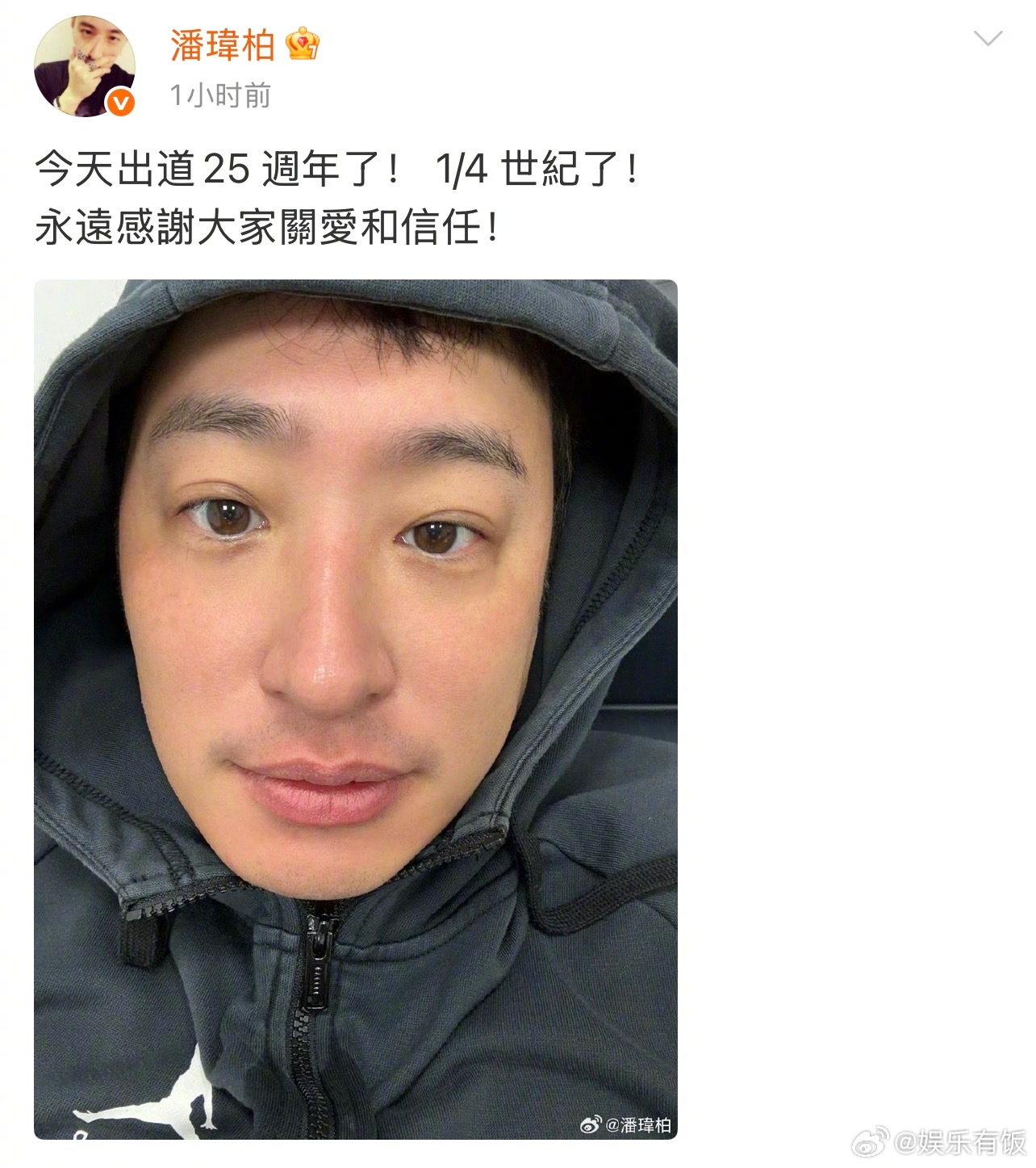 潘玮柏出道1/4个世纪了 潘玮柏发文庆祝自己出道25周年,虽然已经过去1/4 世纪了,但依然那么有魅力