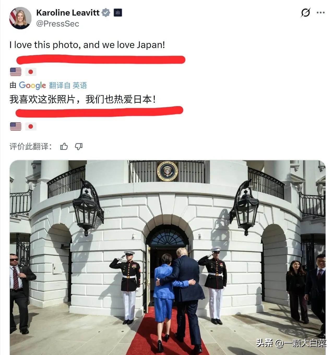 白宫发言人莱维特发帖,说她非常喜欢这张照片,还强调说美国人也“热爱日本”。一个自称名叫“珊瑚”的日本人说,日本人民“对美国寄予厚望”,不仅将美国视为“坚定的盟友”,更将美国视为“最珍惜、最亲密的朋友”。 莱维特这句“热爱日本”听着挺暖,但放到2026年的现实里,味道就有点变了。看看同期数据,超过八成的日本老百姓压根不支持美国在中东的军事行动,更有接近八成人压根不信美国真会在危急关头拉日本一把。一边是官方发言人的热情洋溢,另一边是民间调查的冷冰冰数字,这种温差恰恰是美日关系最真实的写照。 那个叫“珊瑚”的网友把美国当成“最亲密的朋友”,可她的首相高市早苗在华盛顿的经历就没那么美好了。会谈桌上,特朗普当着全世界的面重提“珍珠港”,反问“还有谁比日本更懂偷袭?”镜头捕捉到高市早苗瞬间僵硬的笑容和深呼吸,那种尴尬几乎要溢出屏幕。这哪是朋友间的对话,分明是老大在提醒小弟:别忘了谁是主导者。高市这次带去730亿美元的“投资礼包”,被日本国内骂成是“史上最贵保护费”,钱要投到美国建核电站、天然气设施,收益的大头还得让美方拿走。这种交易,距离平等的“友谊”实在有点远。 为什么会出现这种撕裂?因为当下的美日同盟正处在一种危险的过渡期。美国想用“印太战略”拴住日本,让东京出钱出力当遏华前沿;日本右翼则想借美国的势,突破和平宪法束缚,圆自己的“正常国家”梦。双方各取所需,互相利用,但代价是日本战略自主的空间被越压越窄。高市政府强推防卫预算占到GDP的2%,财政债务却已经堆到GDP的230%,这笔军备竞赛的钱,最终还得从日本老百姓的社保、教育经费里抠。 更讽刺的是,就在高市早苗专机落地华盛顿当天,美国情报机构发布年度威胁报告,直接把她之前的涉台言论定性为“重大政策转变”,并警告这可能引发中国的强烈反制,进而给美国带来安全风险。日本官方吓得赶紧否认。这件事彻底暴露了同盟的本质:美国需要日本当棋子,但绝不允许这枚棋子有自己的想法。一旦日本的动作可能引发失控,华盛顿会毫不犹豫地敲打,哪怕这让东京在外交上尊严扫地。 所以别再被那些“热爱”和“最亲密”的漂亮话迷惑了。国际政治里,没有永恒的朋友,只有永恒的利益。日本现在走的这条路,是在用真金白银和战略自主,换取一份并不牢靠的安全承诺。而当地区的火药桶越来越满时,第一个被推到前线的,往往就是那个自称拥有“最珍惜友谊”的盟友。 各位读者你们怎么看?欢迎在评论区讨论。