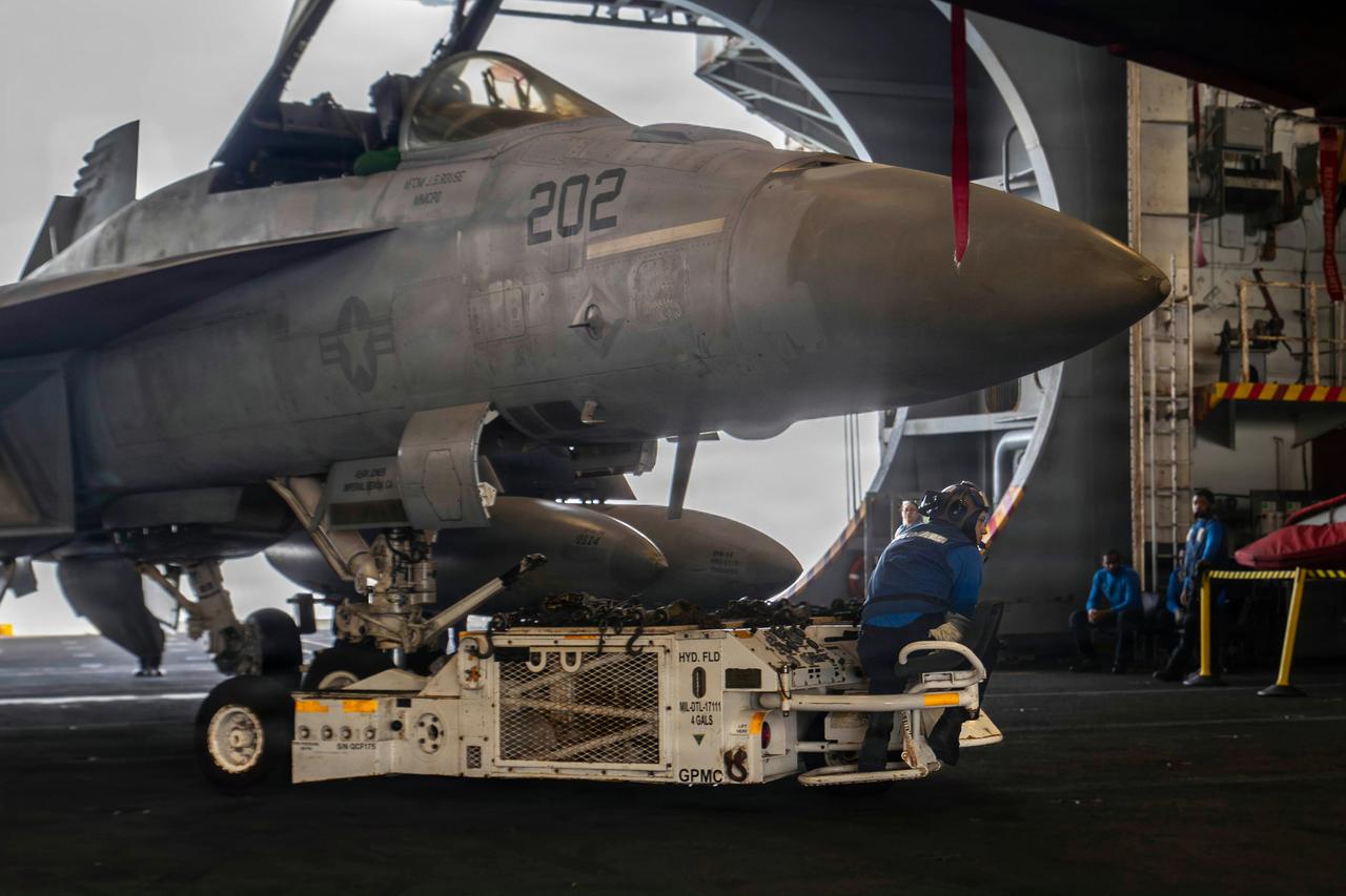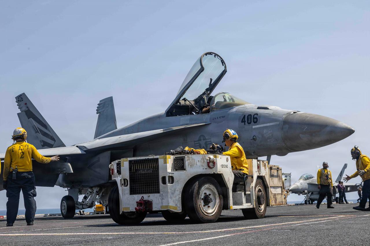 2026年“史诗愤怒”行动中的美国海军舰载机(“亚伯拉罕.林肯”号核动力航空母舰) 亚伯拉罕·林肯号CVN-72是美国海军尼米兹级核动力航母的五号舰,以第16任总统命名,1989年11月11日服役,母港圣迭戈北岛海军航空站,隶属太平洋舰队。舰长332.8米,飞行甲板宽76.8米,吃水11.3米,满载排水量约10.2万吨,是全球首艘突破10万吨级的航母。 动力为2座A4W压水核反应堆+4台蒸汽轮机,总功率26万马力,最高航速超30节,核燃料20-25年更换一次,续航近乎无限。编制约5600人(舰员+航空联队),标配近90架舰载机(含F-35C、F/A-18E/F、E-2D、EA-18G),4部蒸汽弹射器+4部舷侧升降机保障高强度起降。自卫武器有海麻雀、拉姆导弹与密集阵近防炮。