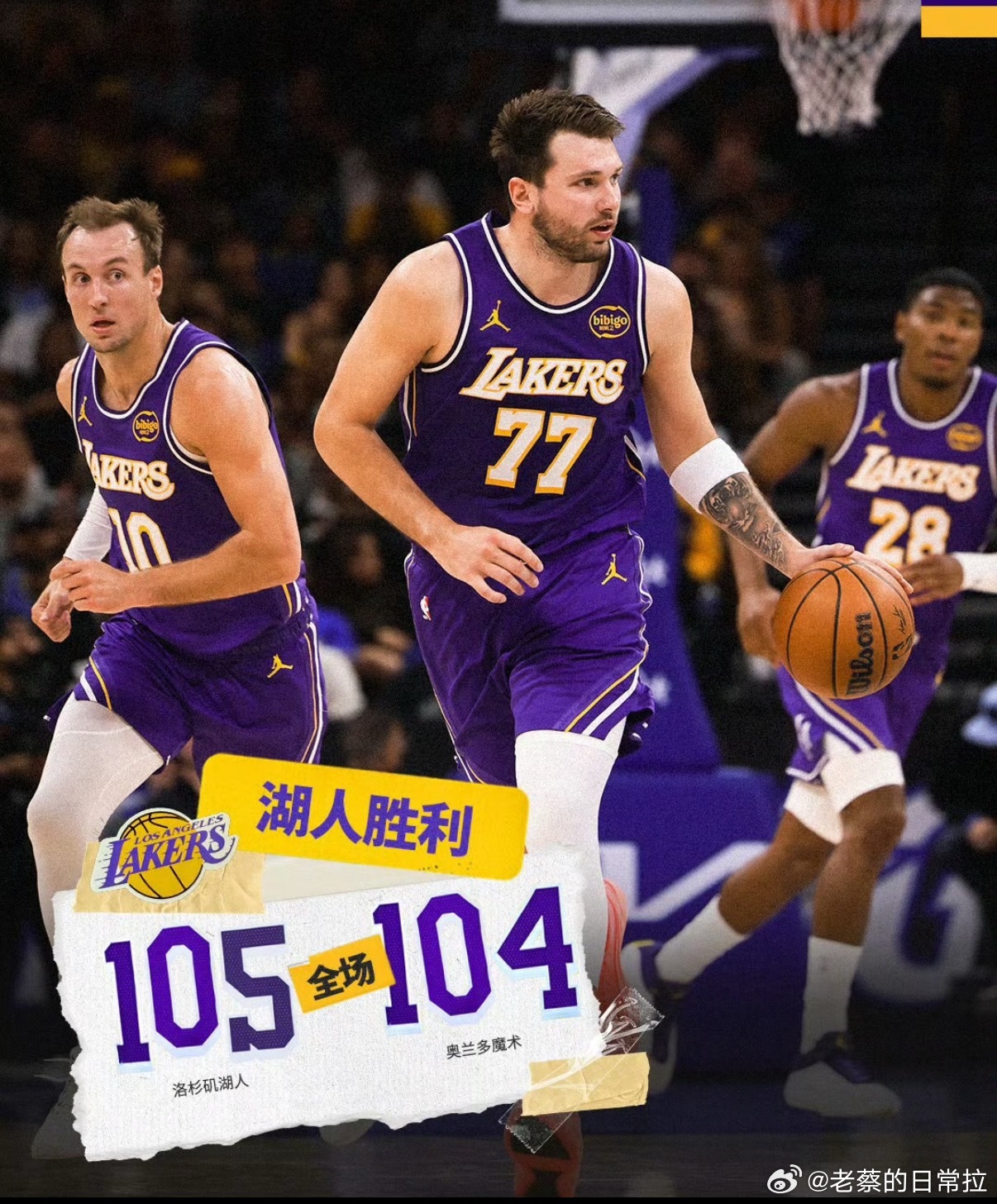 肯纳德三分绝杀湖人105-104险胜魔术,肯纳德终场0.6秒三分绝杀!东契奇3
