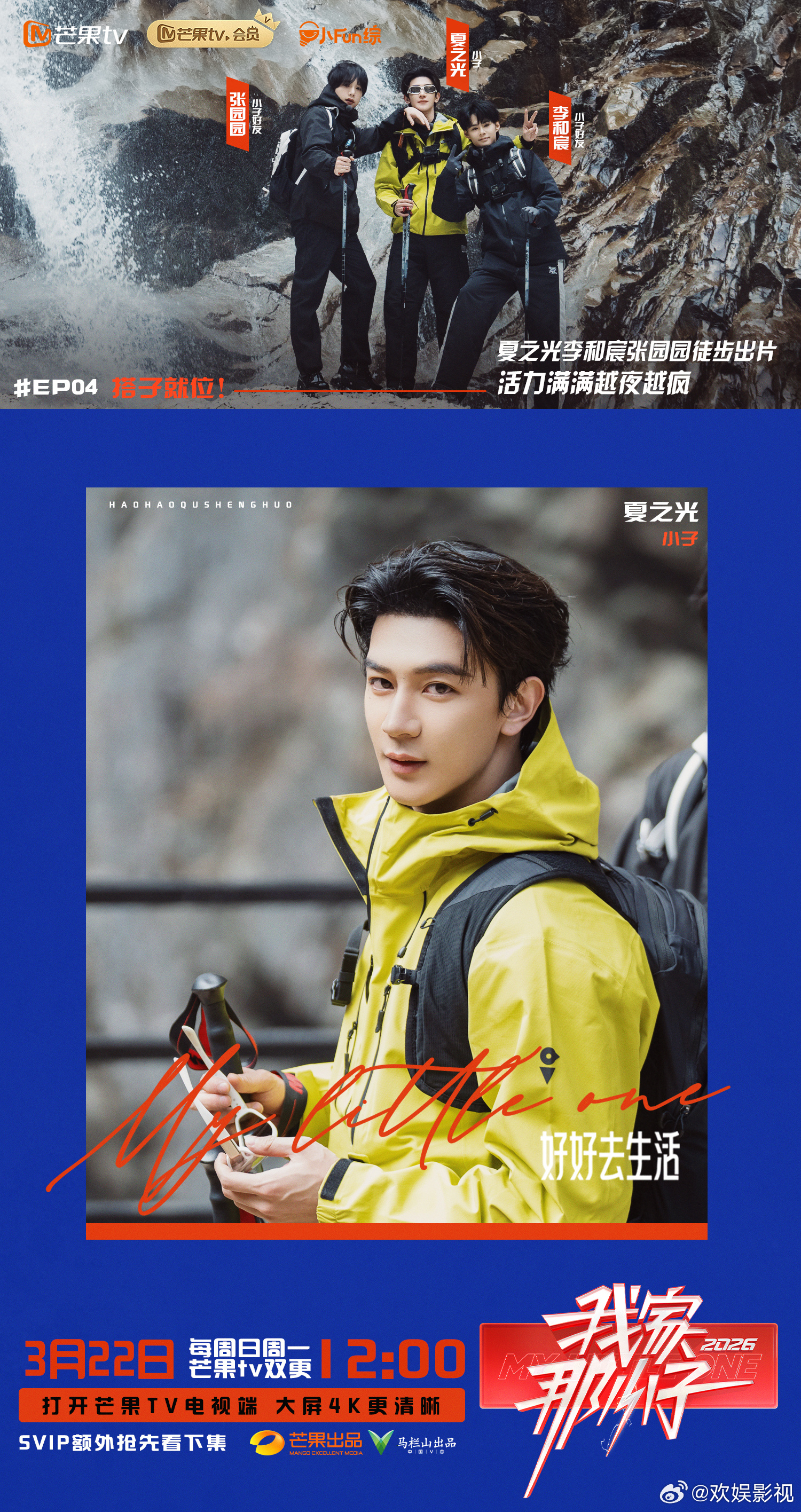 一程山水,笑意满怀。欢娱影视参与录制的综艺节目《我家那小子 2026 》今日播出,中午12:00锁定芒果TV。