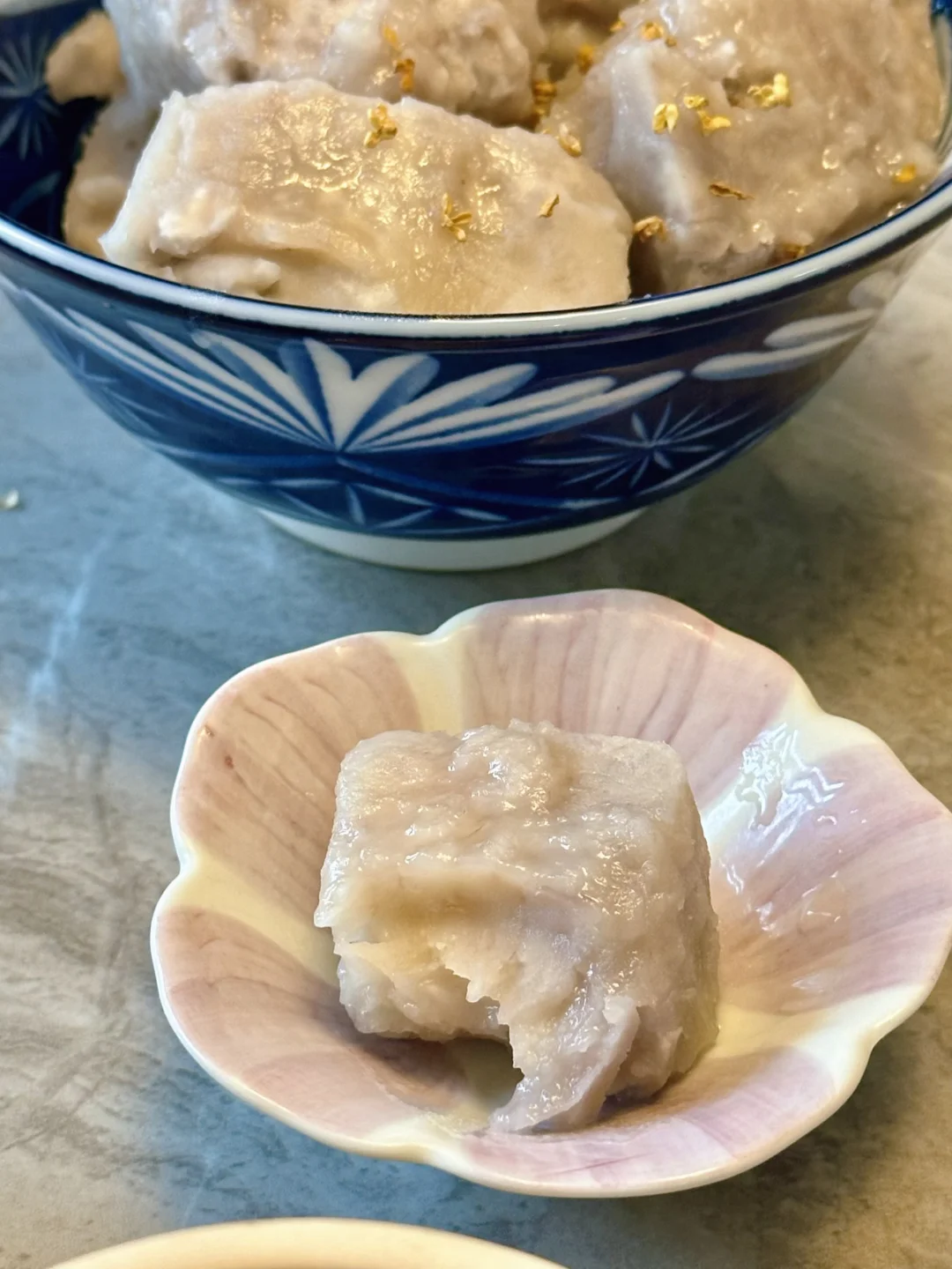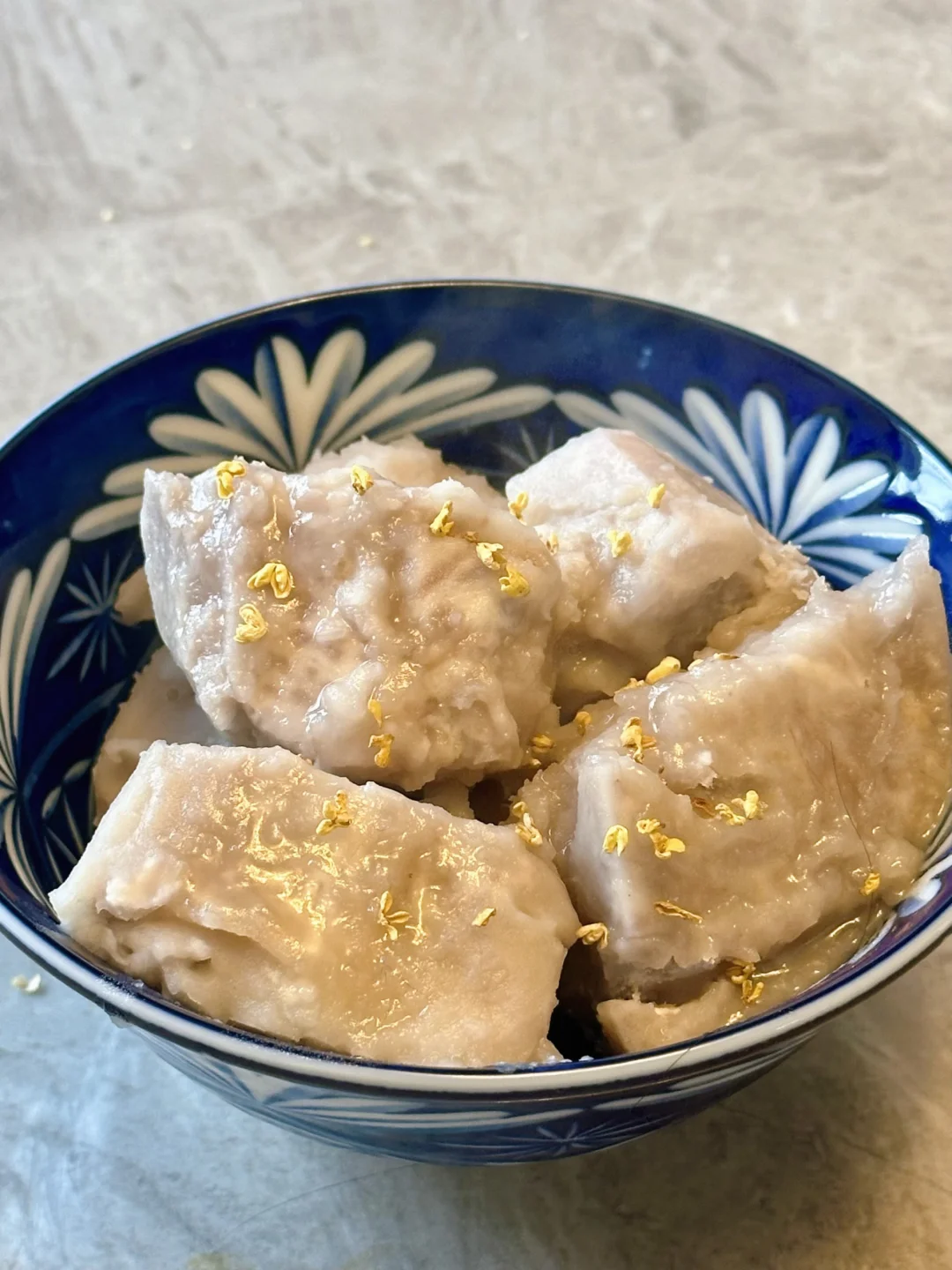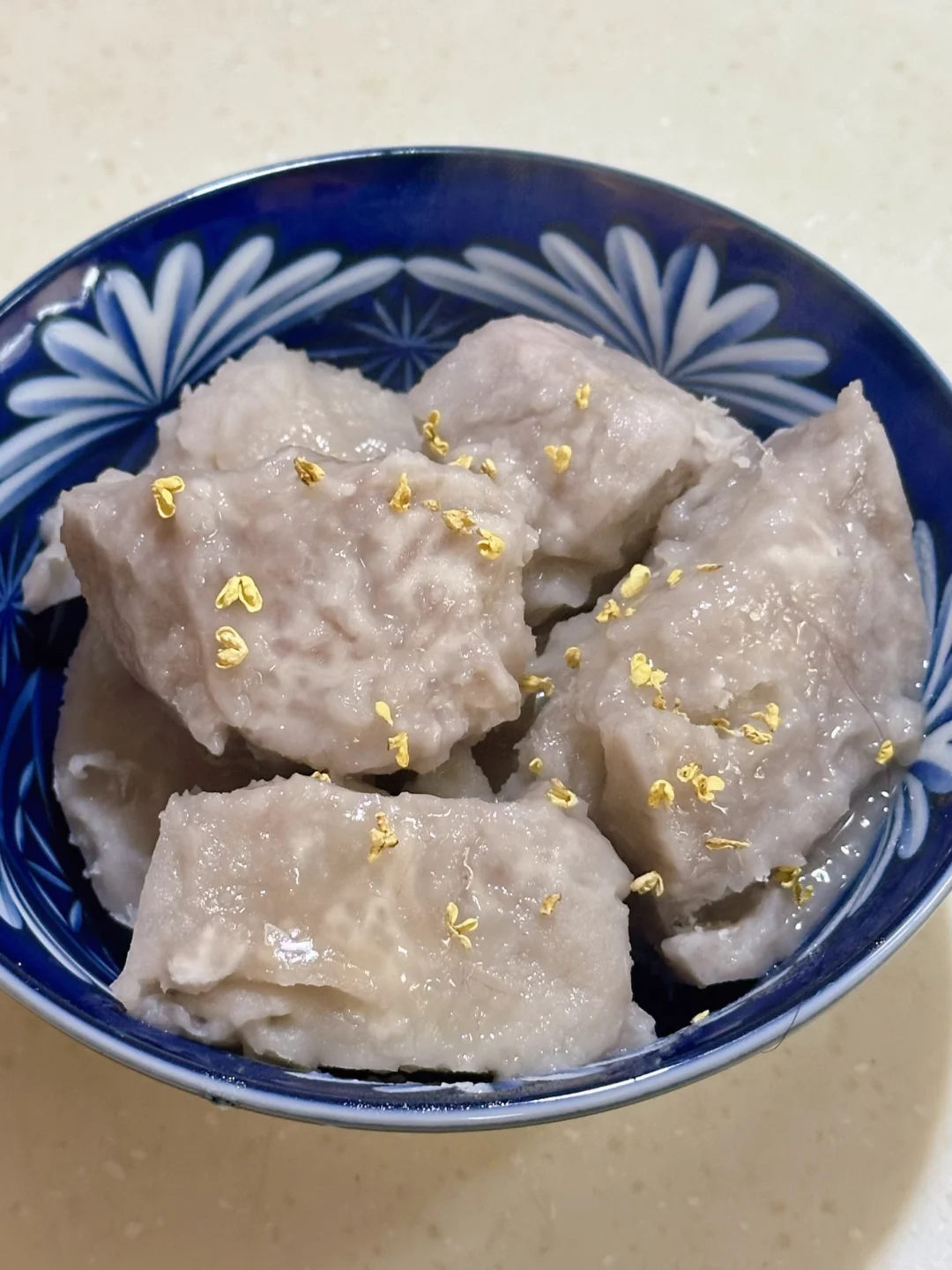 一般的荔浦芋头已经够好吃了,但这样煮以后,在酥糯的基础上竟然还多了一点胶感和梗揪,介于根茎作物和麻薯的口感!表面亮晶晶的糖色,直接吃很美味,兑上鲜奶和其他料做糖水也很百搭!
