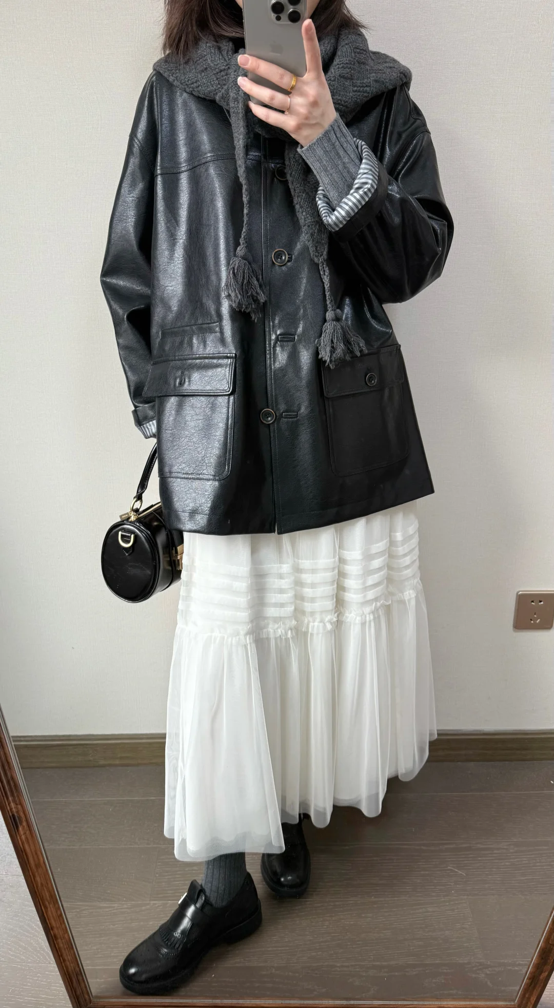 早春穿什么🍨/灰色针织和波点半裙