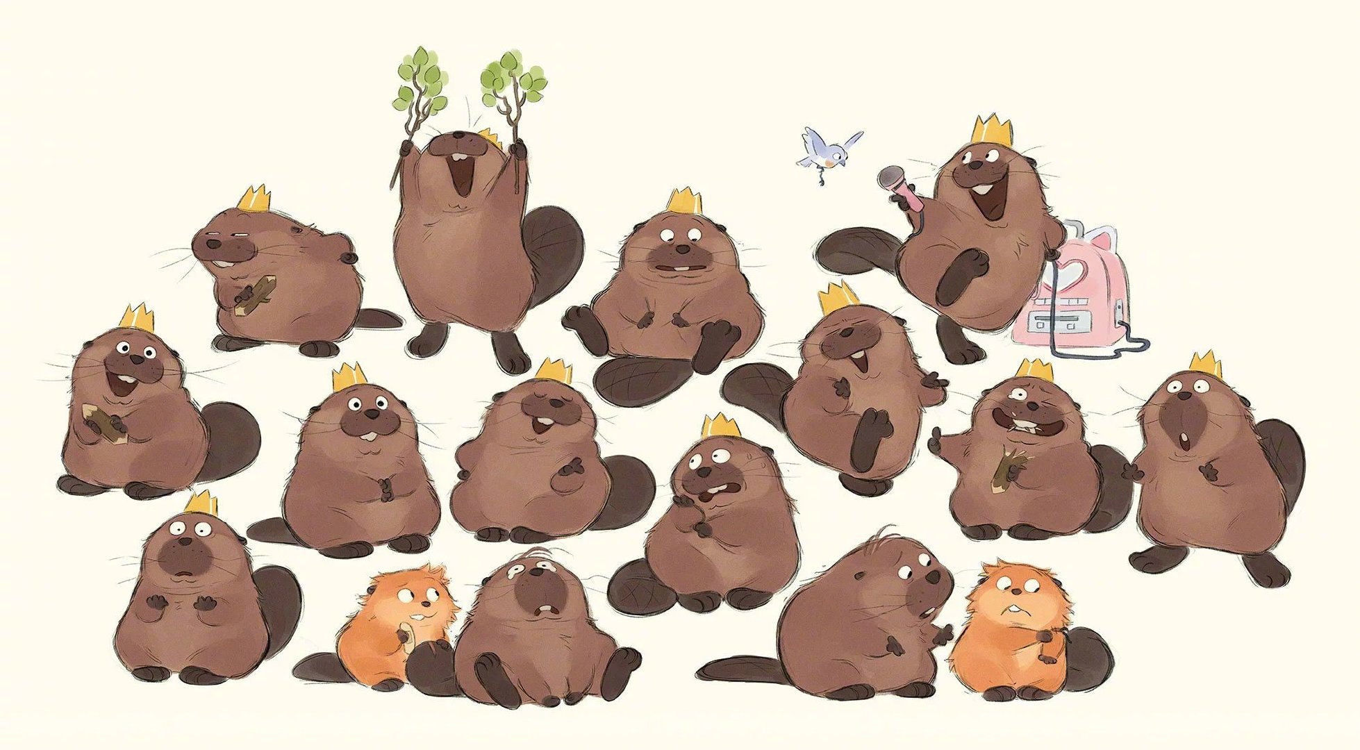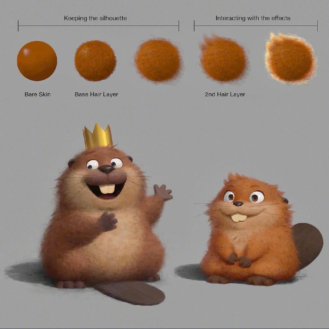 河狸变身计划中的河狸乔治王(King George).给梅宝亲自盖章“国王之爪”太可爱了,谁不想要这样一个暖萌的好伙伴呢~ 导演丹尼尔·钟在《Animation》采访中说:“我最初读到关于河狸的资料时,就感觉到它们是很神奇的生物。就像工程师一样,建造池塘和水坝,河狸出没的地区生物多样性也更高。”.“而且,看它们的照片都是圆滚滚的,我当时就想以后要拍一部关于它们的电影。” 河狸变身计划概念图