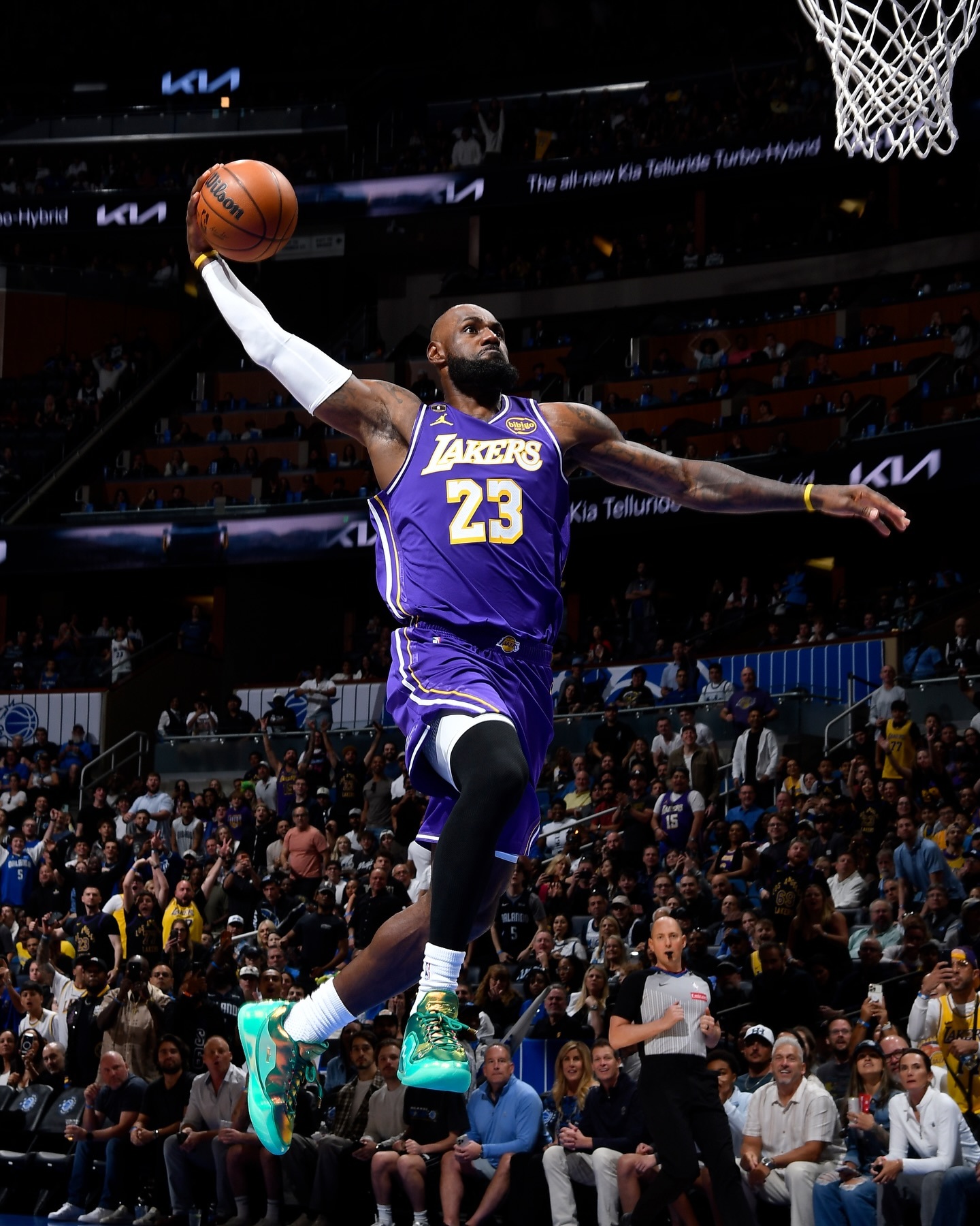 詹姆斯今日上脚的LeBron 23 里程碑 PE,后跟的数字写着1612,代表着詹姆斯1612场出场数,超越了罗伯特帕里什的1611场,成为NBA常规赛历史出场场次排名第一的球员