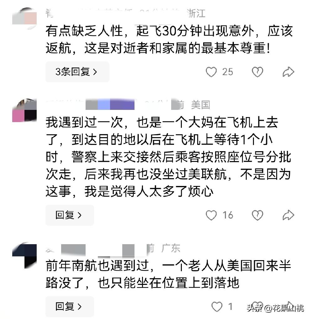 乘客登上飞机,飞机起飞30多分钟后这名乘客去世了,飞机没有像众多人想的返航,而是继续飞完13个半小时的航程,遗体就存放在飞机的厨房里,到达目的地落地后,遗体都已经散发出了难闻的味道,而机上的乘客还不能下机,他们要在机上等待45分钟,等警方调查。 据报道,是英国航班,由中国香港起飞飞往英国伦敦,当时机上有300多名乘客,去世的乘客是一名60多岁的女性,猜测可能是因疾病在飞机起半个小时后去世,航班载着她的遗体和300多名乘客飞完剩下的13个半小时的航程。 她的遗体放在哪里呢?机组人员建议存放在洗手间内把门锁上,但客舱人员不同意,决定将遗体包裹起来存放在飞机后部的厨房内。 不过,当时忽视了一个问题,厨房有地暖,遗体在地暖上被温暖了13个多小时,当飞机即将结束航程时,遗体已经散发出了难闻的味道。 在封闭的机舱内,这种味道令其他乘客感到不适,飞机终于落地了,但机上的乘客还需要继续忍耐45分钟,警察需要上机调查。 一名知情人士谈及飞机起飞半个小时有乘客去世而航班没有返航时说道:“坦白的说,如果一名乘客已经死亡,那并不被视为紧急情况。” 英国航班对此回应称:“所有程序都已正确执行。” 网友对此各抒己见,有人认为,起飞半个小时发生这样的事,应该返航,这是对逝者和家属最基本的尊重。 另有网友称自己也遇到过类似的事情,航班也没有返航,只要符合航司的规定和程序,就没什么问题。 大家怎么看?欢迎留言讨论。 来源:深圳新闻网、现代快报