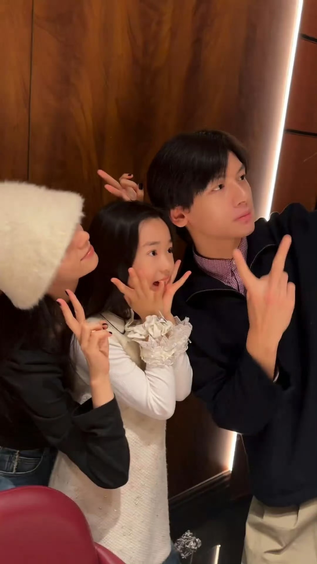 周也翟潇闻小酒窝聚餐合照,完全见亲戚家孩子既视感吧,聚餐时会带礼物陪着玩的姐姐姐