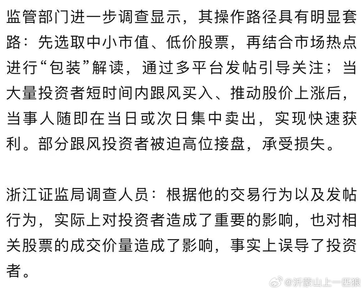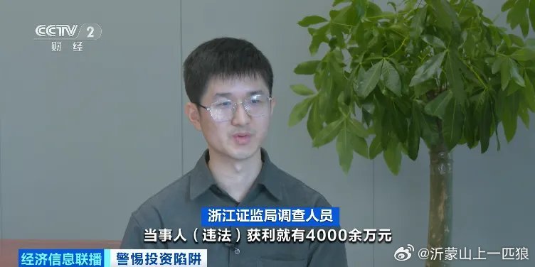 浙江证监局调查人员:根据投资者举报投诉的信息调查核算后发现,在短短半年之内,当事人违法获利4000余万元,最开始的本金可能只有几百万元。