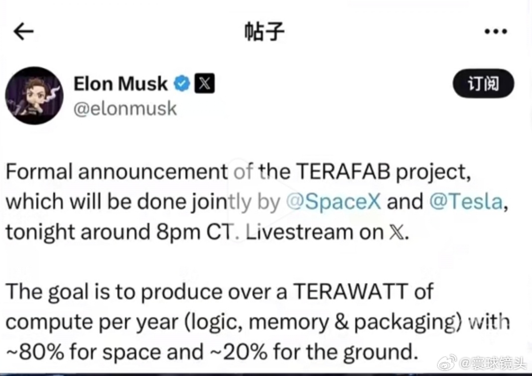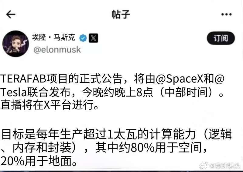 马斯克拟建全球最大芯片厂马斯克宣布:拟建全球最大芯片厂目标年产能超1太瓦算力约8