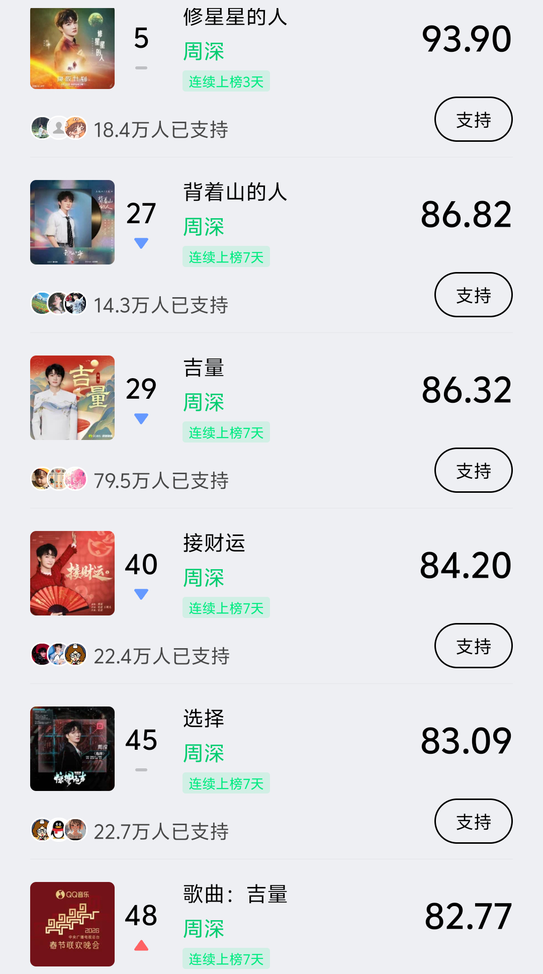 周深 📣 3.22 巅峰潮流 📣米米们晚上好,每歌做6个动作路径:Q音-乐馆-排行-潮流巅峰