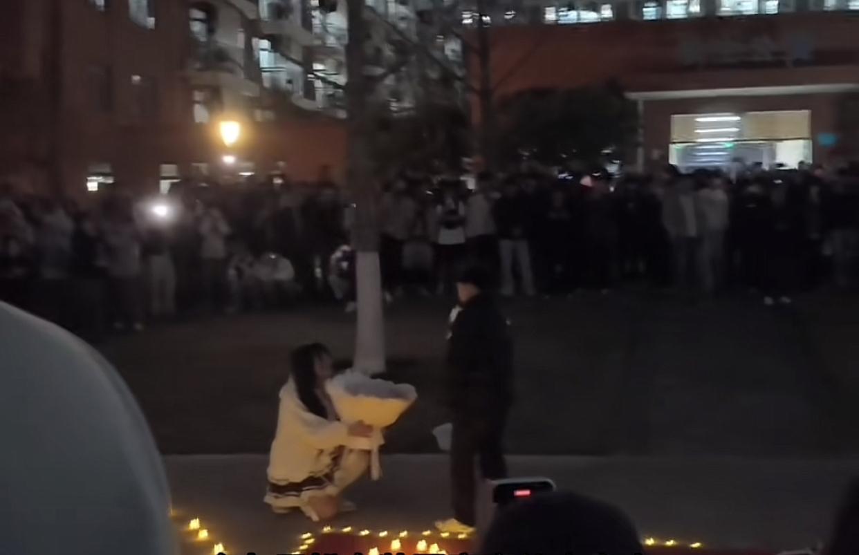 一句同学在寝室楼下给舍友表白,不仅把一旁四十多岁的男老师给看懵了,还把网友们的CPU给干烧了。 起因是武汉一博主在寒假发了这样一条视频:“我发什么我都不火是吧?那么好,这条视频要是火了,我女装穿成小蛋糕。开学在男寝楼下给室友来一场轰轰烈烈的表白”。不出意外这个视频火了。 于是他当即开启了自己的整蛊之路,他表面上给室友介绍自己的表妹当对象,实际上是用自己的小号加了室友的联系方式,然后还买来了一套洛丽塔女装,时不时穿上去拍点照片发给舍友,增加两人的亲密度。就这样他和室友聊的火花带闪电,室友甚至已经幻想好两个人毕业之后结婚生娃幸福一生了。 就在昨天晚上,博主不仅向室友表白了,还是在学校宿舍的楼下用鲜花蜡烛拼了一个巨大的爱心当众表白。刚开始男生面对博主的表白,还是有些开心的,毕竟有人表白谁不开心,但发现表白的人居然是自己的室友后,只是一味的尬在原地喝奶茶。 一旁学校的老师和保安看到这一幕全都懵了,愣在原地,是阻止也不是,不阻止更不是。最后男生虽然没同意他的表白,但还是没扭过博主,被他直接一把将他抱起来回了宿舍。 这下老师和同学们都傻眼了,心想武汉难道比成都还有说法吗?网友不语,只是一味的祝福。