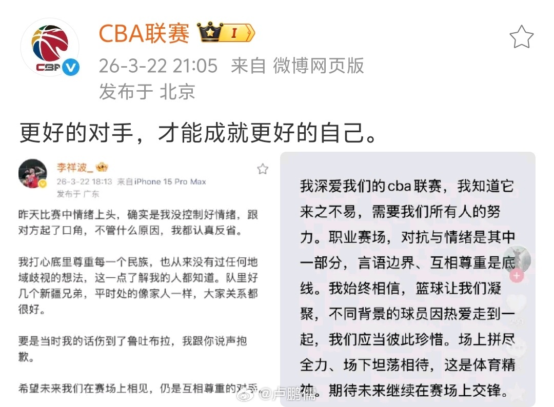 更好的对手,才能成就更好的自己。 cba小卢篮球世界