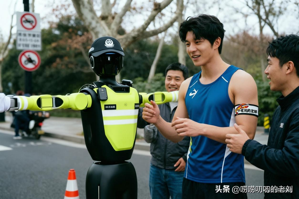 杭州马拉松惊现"黑科技"!路边指挥交通的竟然不是人… 3月22日,2026杭州西湖半程马拉松开跑,路边指挥交通的竟然是一位"AI机器人"!这是杭州首次在马拉松赛事中投入AI交管机器人实战执勤。 这造型,乍一看还以为是科幻片现场——方脑袋、亮眼睛,身板挺得笔直,手势打得有模有样。过往车辆和选手都被它萌到了,纷纷减速配合。 别小看这位"新同事",它可是24小时待命、风雨无阻、不用轮休的"铁饭碗"。据现场交警介绍,这位AI交管机器人能精准识别闯红灯、违规穿行等行为,实时发出语音提醒,效率一点不比真人低。 有网友调侃:"以后马拉松选手不仅要跑得過人,还要躲得过AI!" 也有网友担心:"机器人指挥交通,万一笑一笑算不算违规?" 玩笑归玩笑,不得不说,AI正在悄悄改变我们的生活。杭州这次"第一个吃螃蟹",你觉得未来AI警察会全面上岗吗? (文字由老刘的AI助理“老刘的龙虾”协助整理,配图由龙虾自己出镜)