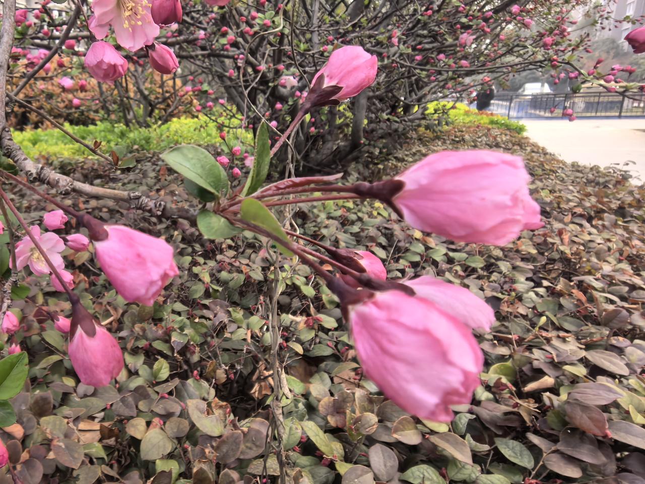 扬州邗江街头梅花艳 一大早漫步扬州邗江街头,晨光刚漫过屋檐,便与一树树梅花撞个