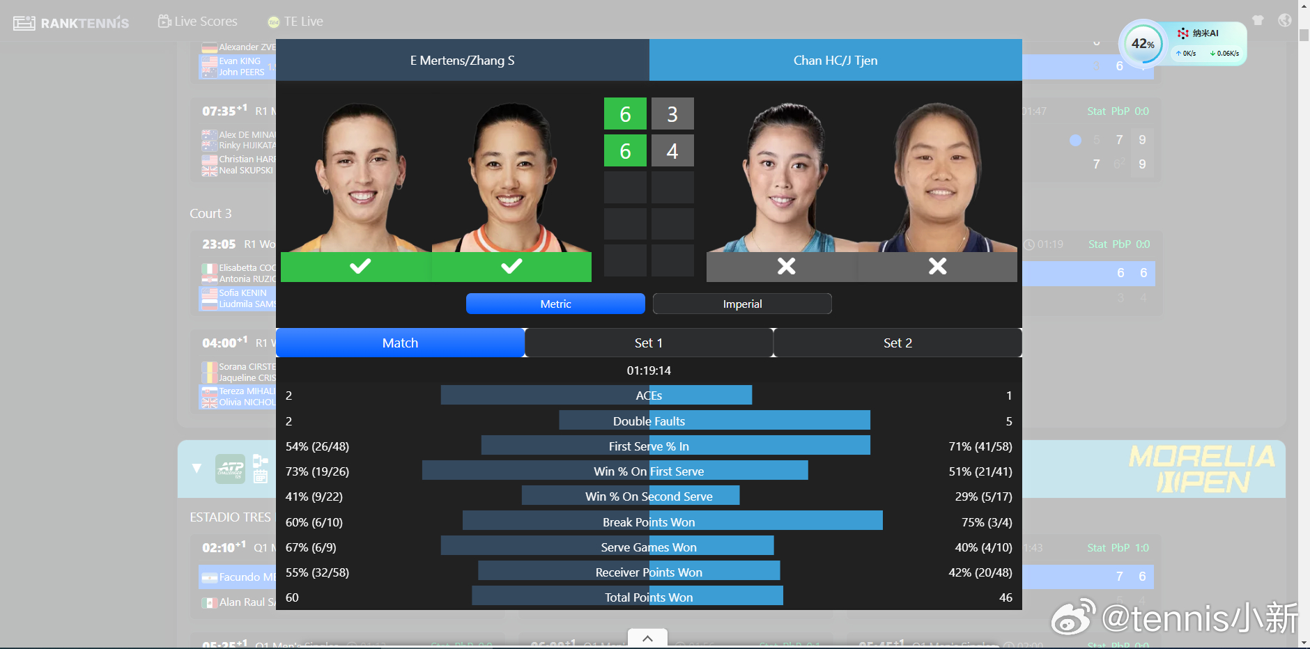 个人的双厨狂喜今天两个人继去年迈阿密后再次同步郑钦文击败前澳网冠军网球tal