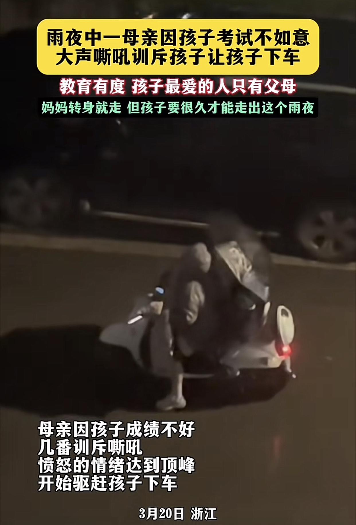 她转身就走,孩子可能需要很长一段时间才能这场雨夜。刷到一视频,雨夜里一位母亲在电动车上与后座孩子争吵着,孩子不停哭着,母亲不停嘶吼着,不停命令和用手扒拉孩子的雨伞让孩子下车。而理由是因为这次孩子只考了90没到100,不符合家里对他的要求。 孩子害怕被独自丢在路边,一边撑着雨伞,一边哭着哀求妈妈再给他一次机会,承诺下次绝对考一百分。 可妈妈只是崩溃怒吼着说:我不要你了,然后毫不留情的将孩子推开,接着骑着电动车径直离开,而孩子妈妈开车离开时不再求妈妈带他一起回家,而是问妈妈:雨伞还要吗? 看着妈妈远去的背影,小小的一个人低着头往前走的时候不知道在想什么?也许这个雨夜会贯穿他往后很多年的人生。 我能理解作为妈妈望子成龙,望女成凤的心理,但是也希望不要过度在意成绩,孩子这次没有考好,下次努力就好,没有必要非得要求孩子做到完美,这样只会把压力给到孩子,毕竟我们当时在产房的愿望也不是清华北大,而是希望孩子平安健康,不要让愤怒压倒理智,做了让自己后悔的事。 如果孩子拥有的是一位更懂得尊重他,更爱护他的妈妈的话,他的人生会很不一样。即使他在成绩上没有得到满分,也许他在其他的领域也会开出花,至少他会有一个健康的人格底色。而不是像现在这样,需要很长一段时间才能走出这个雨夜。