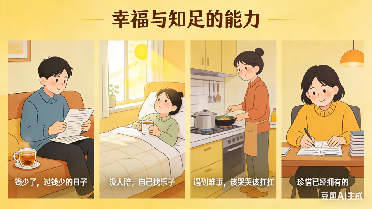 有人说钱,有人说爱,有人说运气。这些都没错,但我越来越觉得,幸福和“知足的能力”关系最大。 这不是一句鸡汤。 你看身边那些真正幸福的人,未必是过得最顺的。他们也会失业、会生病、会和家人吵架、会为钱发愁。但他们有一个共同点:不跟生活较劲。 钱少了,就过钱少的日子,不一边花一边怨。没人陪,就自己找乐子,不把情绪寄托在别人身上。遇到难事,该哭哭该扛扛,但不会反复问“为什么是我”。 这种能力叫“知足”。它不是认命,而是知道自己有什么。 我们大部分的不幸福,其实不是因为拥有的太少,而是盯着没得到的太多。手里攥着健康的身体,却焦虑房子不够大;家人就在身边,却羡慕别人家的孩子更出息。 真正的幸福,不是拥有所有想要的,而是珍惜已经拥有的。 这不是让我们不追求更好,而是提醒自己:在奔向远方的路上,别忘了看看手里已经握住的。 幸福没那么远。它就在你今晚能睡个好觉,在父母电话里说“没事”,在深夜回家时有一盏灯为你亮着。 学会看见这些,幸福就来了。对幸福的感悟 每日幸福的感悟 幸福是什么味 幸福的小秘诀 父母就是幸福 对幸福的感觉 这就是中国幸福