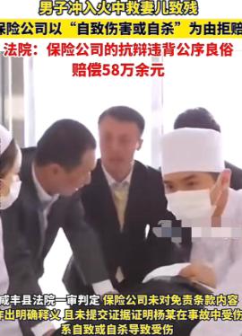 湖北,一男子家中失火,妻儿被困屋内,男子冒死冲进火场将家人救出,却全身烧伤!事后男子向保险公司索赔,对方竟认为男子是故意“自残”,而拒绝赔付!男子一怒之下将其告上法庭索赔58万,而法院这样判! 2023年大年初一的凌晨,杨某坐在邻居家喝酒,窗外鞭炮还没停。 然后有人跑来喊:你家着火了。 他放下杯子,冲出去了。 没有人拦得住他。 妈妈、妻子、婴儿——三个人困在那栋木屋里,火舌已经把门框舔得滋滋作响。他就这么冲了进去,来回跑,一个一个背出来,直到自己再也站不住。 家人全部生还。 他被送进了医院,全身大面积烧伤,最终认定:二级伤残。 后面等着他的,是数次植皮手术和无止境的康复训练,还有一张让普通家庭窒息的医疗账单。 好在,单位早就给他买了人身意外险,保障范围涵盖伤残、医疗、住院津贴。他备齐了所有材料——病历单、火灾事故认定书、消防部门的鉴定报告、目击者证词,正式递交理赔申请。 然后,他等来了一张拒赔通知。 理由四个字:自致伤害。 这是保险公司的原话。他们说,杨某冲进火场是"故意自残"。 你没看错。 一个父亲、一个丈夫、一个儿子,用自己的身体把家人从火里扛出来,在这家保险公司的内部审查结论里,这叫"故意自残"。 杨某去理论,带着证据,一次又一次。 保险公司的答复始终如一:拒绝重新审核。对方甚至拿不出任何证据证明他存在自伤意图,就是咬死这四个字不松口。 协商这条路,彻底堵死了。 他把保险公司告上了法庭,索赔项目包括医疗费、伤残赔偿金、后续康复费用等,合计58万元。 庭审上,保险公司依然搬出那份格式合同,指着免责条款说:这是"自致伤害",我们不赔。 法院把所有证据逐一过了一遍。 消防部门的鉴定结论清楚写着:火灾属于意外。医院的诊疗记录显示:杨某的烧伤由明火直接造成,完全符合意外伤害的认定标准。现场目击者的证词也指向同一个方向:他冲进去,是为了救人。 法院还注意到一个细节——保险公司在卖这份保险的时候,从来没有对免责条款进行过明确的提示和解释。 按照法律规定,这条款压根对杨某没有约束力。 判决下来了:支持杨某全部诉求,保险公司限期支付58万元。 保险公司不服,上诉至恩施州中级人民法院。 二审的结果是:驳回上诉,维持原判。 最终,保险公司付了这笔钱。 这件事有个地方值得细想。 保险公司在整个过程里,从没拿出过任何证据证明杨某"故意自伤",就敢直接下拒赔通知。 它赌的是什么?大概是赌一个刚经历浩劫、躺在病床上的伤残男人,没有力气跟它耗到底。 这种算盘,在法律面前打不响。 类似的事不是第一次发生。 江苏曾有男子跳水救员工,溺亡,保险公司同样以"自伤"为由拒赔,最终也被法院判赔。这类案件的逻辑是一致的:把紧急救援行为扭曲成自我伤害,既违背基本事实,也踩了公序良俗的红线。 法律在这类案件上的态度越来越清晰:"自致伤害"必须以主观故意为前提,慌乱火场里的本能冲进去,跟故意割腕是两码事,不能混为一谈。 而那些销售时从未解释过的免责条款,更不能在理赔时突然变成挡箭牌。 杨某用烧伤的身体换回了三条命,法院用一纸判决还了他一个公道。 保险公司卖出去的,本来应该是安全感。不是危难时刻捅人一刀的那种冷漠。 信源:男子冲进火场救人致重伤——湖北一保险公司称其为自致伤害拒赔被判驳回2024-05-07 08:35:28 | 来源:中国法院网
