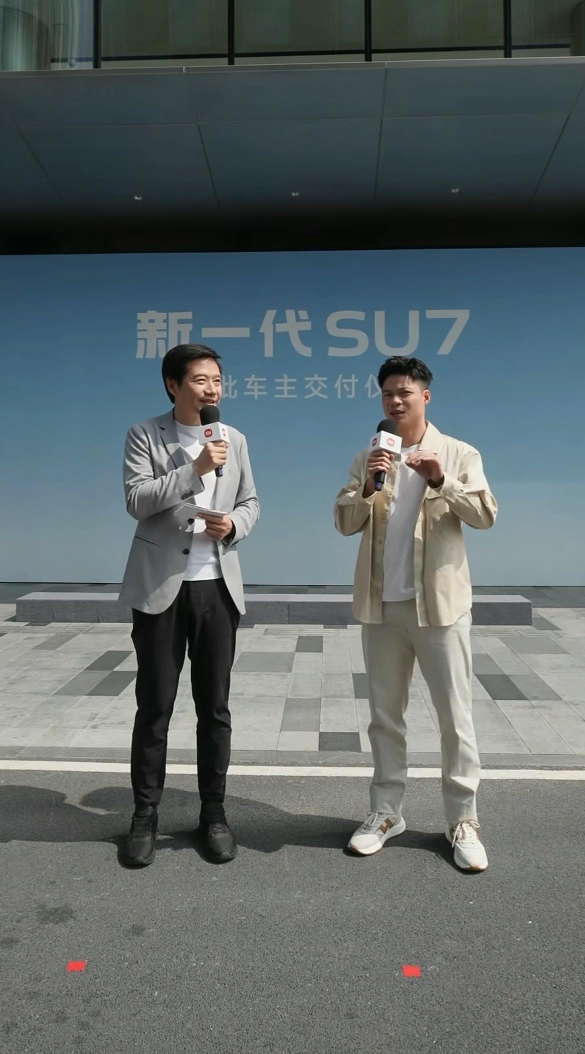 3月23日,新一代SU7首批车主交付仪式在深圳举行。 交付仪式之前,小米创始人雷军和小米汽车代言人苏炳添带网友云游小米深圳总部。