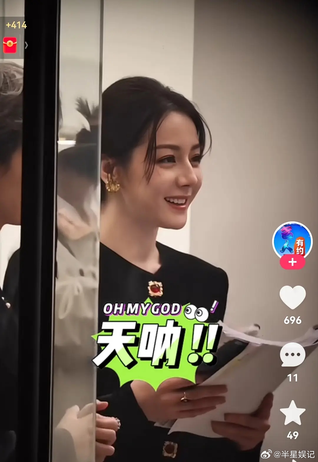 刘亦菲你要注意,背面的镜子给你反光了。