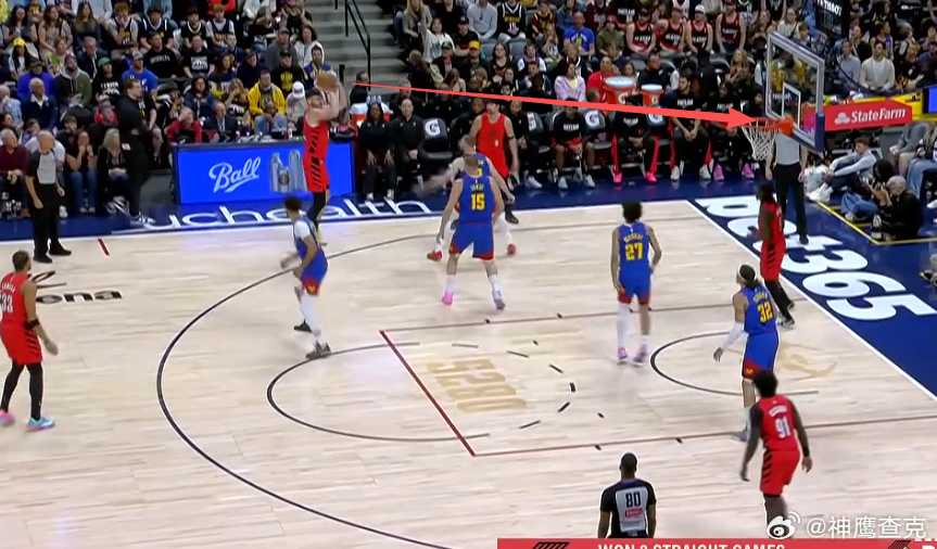 1234阿夫迪亚突破行进间吸引掘金双人防守后立即回身传球找到左翼被放空的克林根,克林根接球犹豫后见掘金坚决放空于是出手三分予以惩罚,手起刀落。