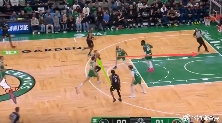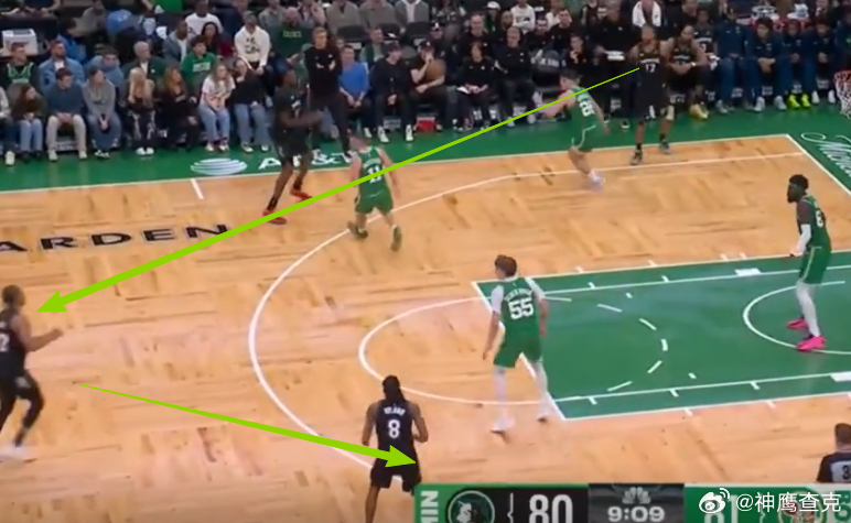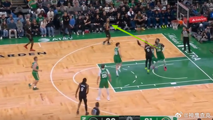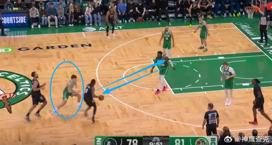 6789 10迪文琴佐中路无球跟进接海兰德上球后突破直杀篮下,撕扯防守阵型后分球给底角的凯尔,球经传导再回到海兰德手中,右侧45°的海兰德接球的同时使用横撤步与防守人进一步拉开距离,随即出手三分稳稳命中,连得5分帮助球队一举反超比分。