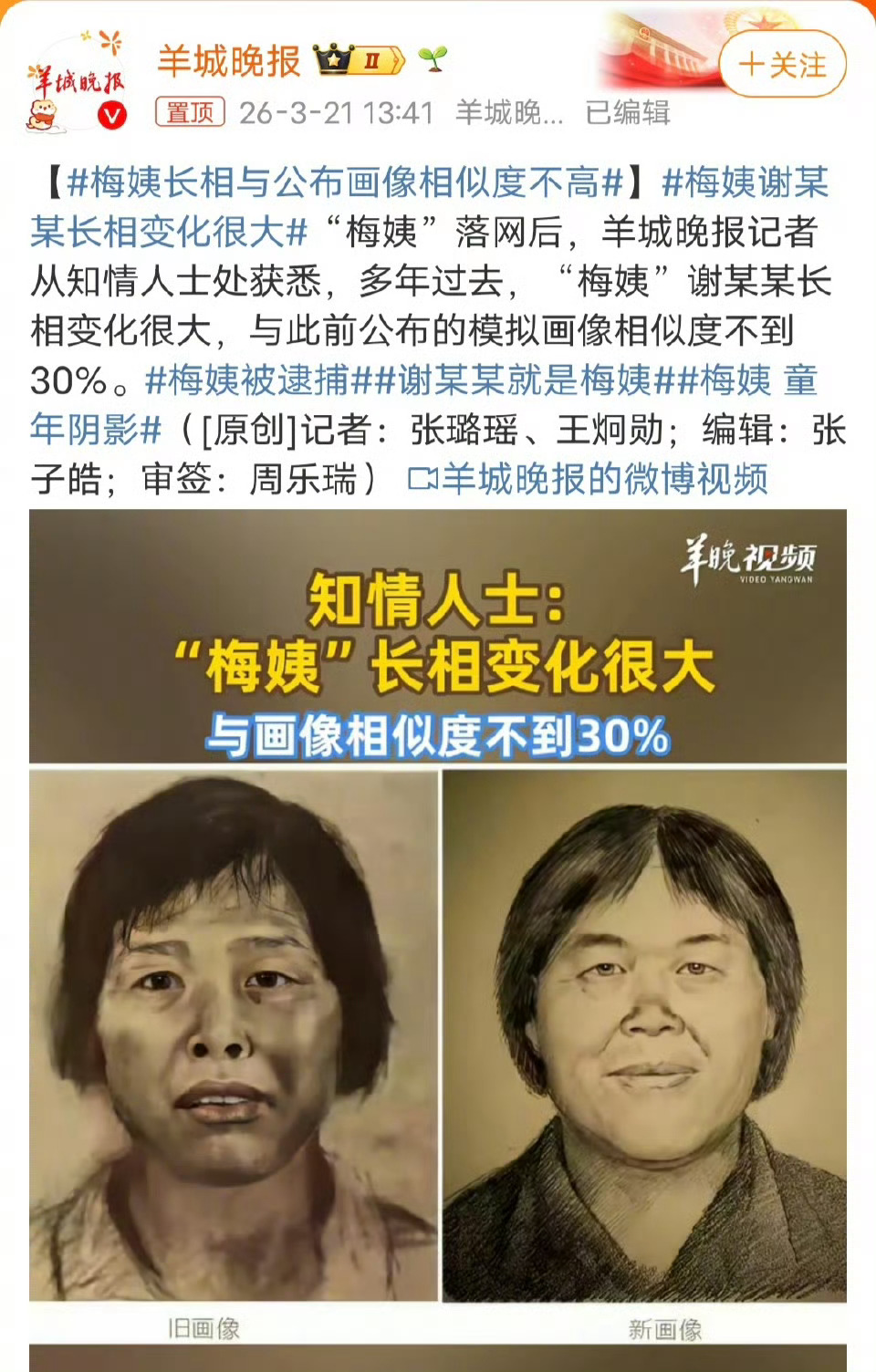 梅姨样貌是两张画像结合体赶紧安排开庭吧,让大家看看梅姨究竟长什么样???