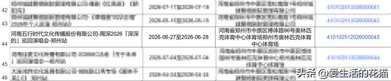 郑州的朋友有福了,深深的巡回演唱会郑州站审批通过啦! 演出会在2026年6月27日和28日,也就是学期末的周末,地点是郑州奥体中心体育场。 这对郑州的朋友来说简直太幸福了!想想能现场听周深唱歌就超激动。现在就静等官宣售票,希望大家到时候都能抢到票,好运满满!