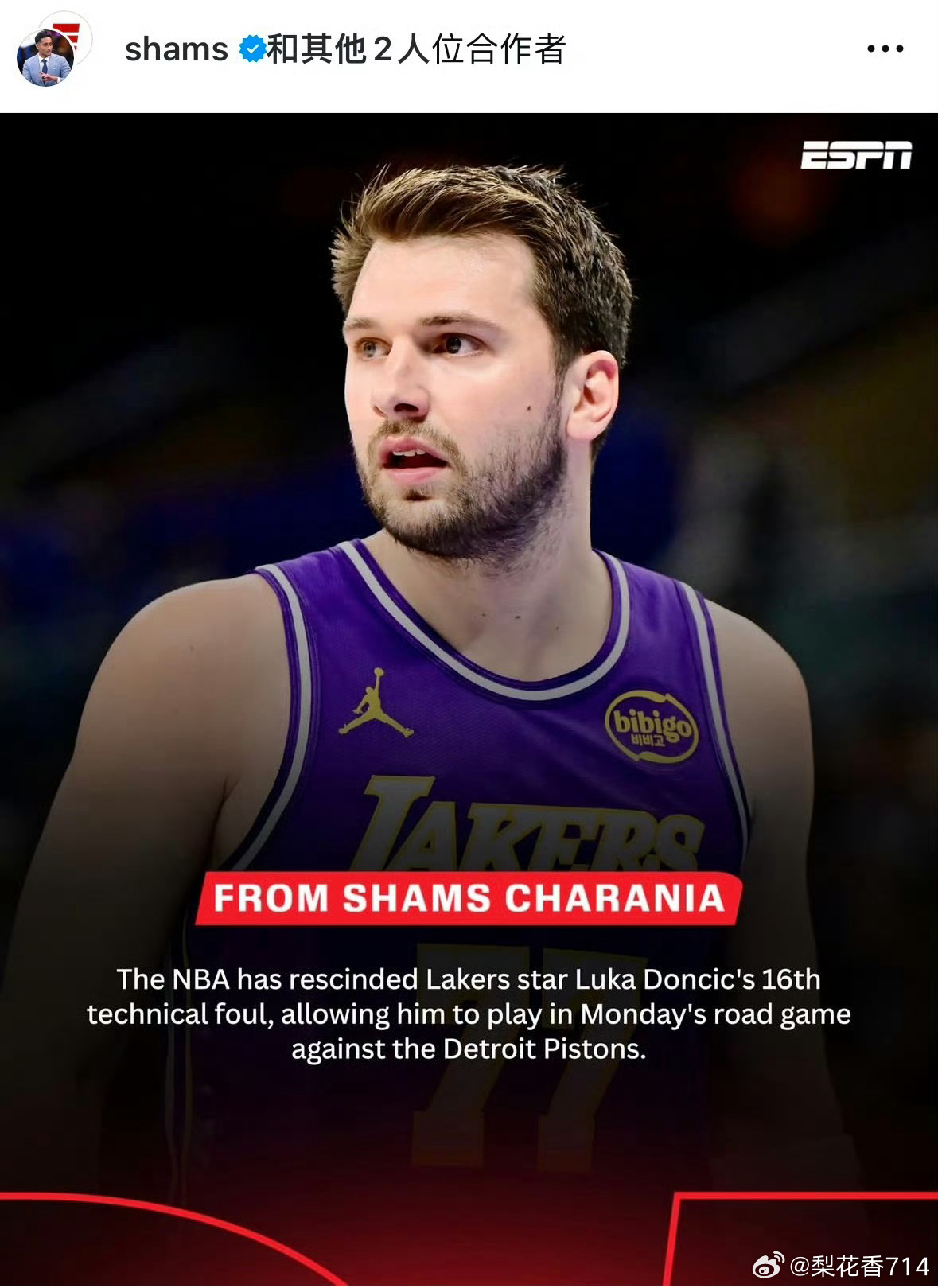 首先湖人这边先迎一条大好消息,东契奇第16次技术犯规被裁判取消!
