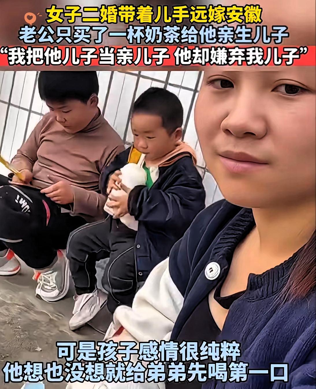 二婚夫妻最忌讳啥? 安徽这位大姐的遭遇太戳心了! 自己掏心掏肺把老公的亲生儿子当亲娃疼,结果老公回家带奶茶,只给亲儿子买了一杯,全程没提她儿子的份。 别觉得这只是一杯奶茶的事,这背后藏的是实打实的偏心和嫌弃啊! 既然选择重组家庭,就该明白“一家人”这三个字的重量,孩子是无辜的,区别对待只会在孩子心里扎刺,也寒了妻子的心。 真正的重组家庭,靠的不是表面搭伙,而是发自内心的接纳。 连一杯奶茶都舍不得给继子买,这样的婚姻里,妻子的付出和孩子的委屈,恐怕永远换不来对等的真心。 你们觉得这种偏心能改吗?如果是你遇到这种情况,会怎么处理?