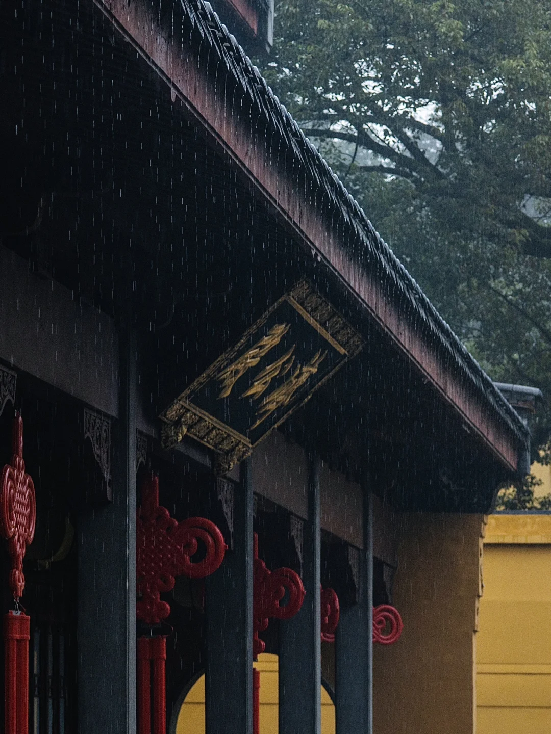 ❶拍屋檐雨滴,一定要找深色背景才能看清雨滴。高速快门拍雨滴,慢速快门拍雨丝,图三的快门是1/160可以参考。