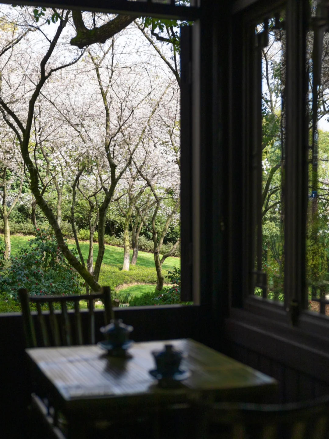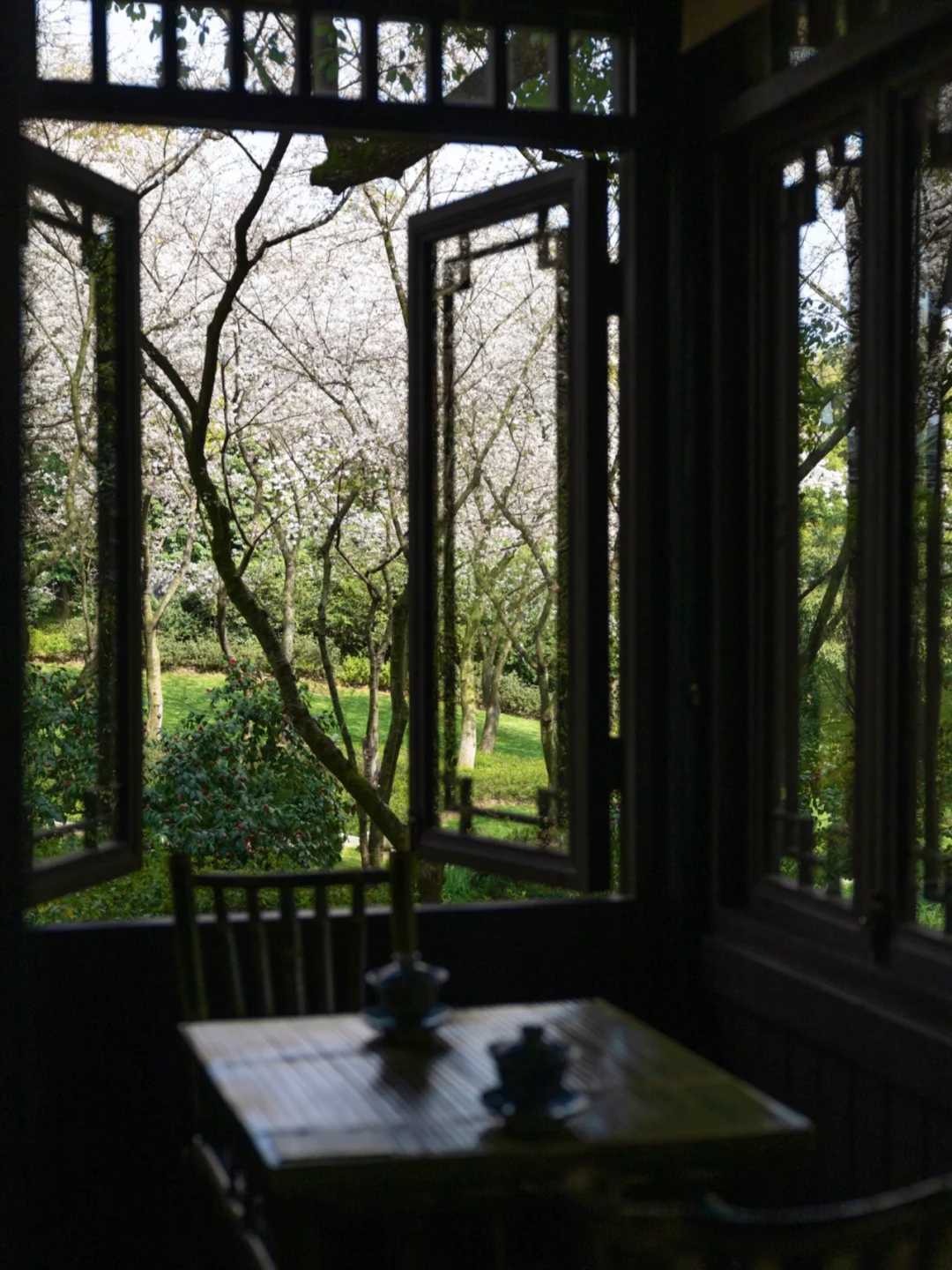 杭州茶楼太绝了!推开窗就是扑面而来的樱花!