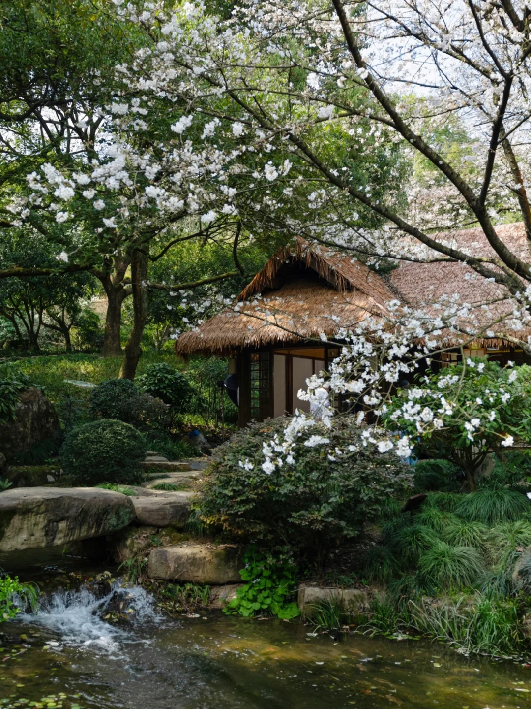 · 茶叶博物馆双峰馆区 一直都是杭州赏樱的经典机位 尤其茅草屋前的两棵 站在石桥上怎么拍都美 今天意外走上茶室二楼 发现窗外就是一大片樱花 现场真的超惊艳! · 具体位置在玉川楼(第八展厅)二楼 是以川蜀为主题的体验馆 同时也是个仿古的小茶楼 免费开放,空间不大,拍照氛围感拉满 除了茅草屋和茶楼窗景外 还有一片沿阶的樱花林 拍照的时候注意不要踩进草地 · 📍|茶叶博物馆(双峰馆区) 🈺️|9:00-17:00 📷|拍摄时间2023.3.15 ·