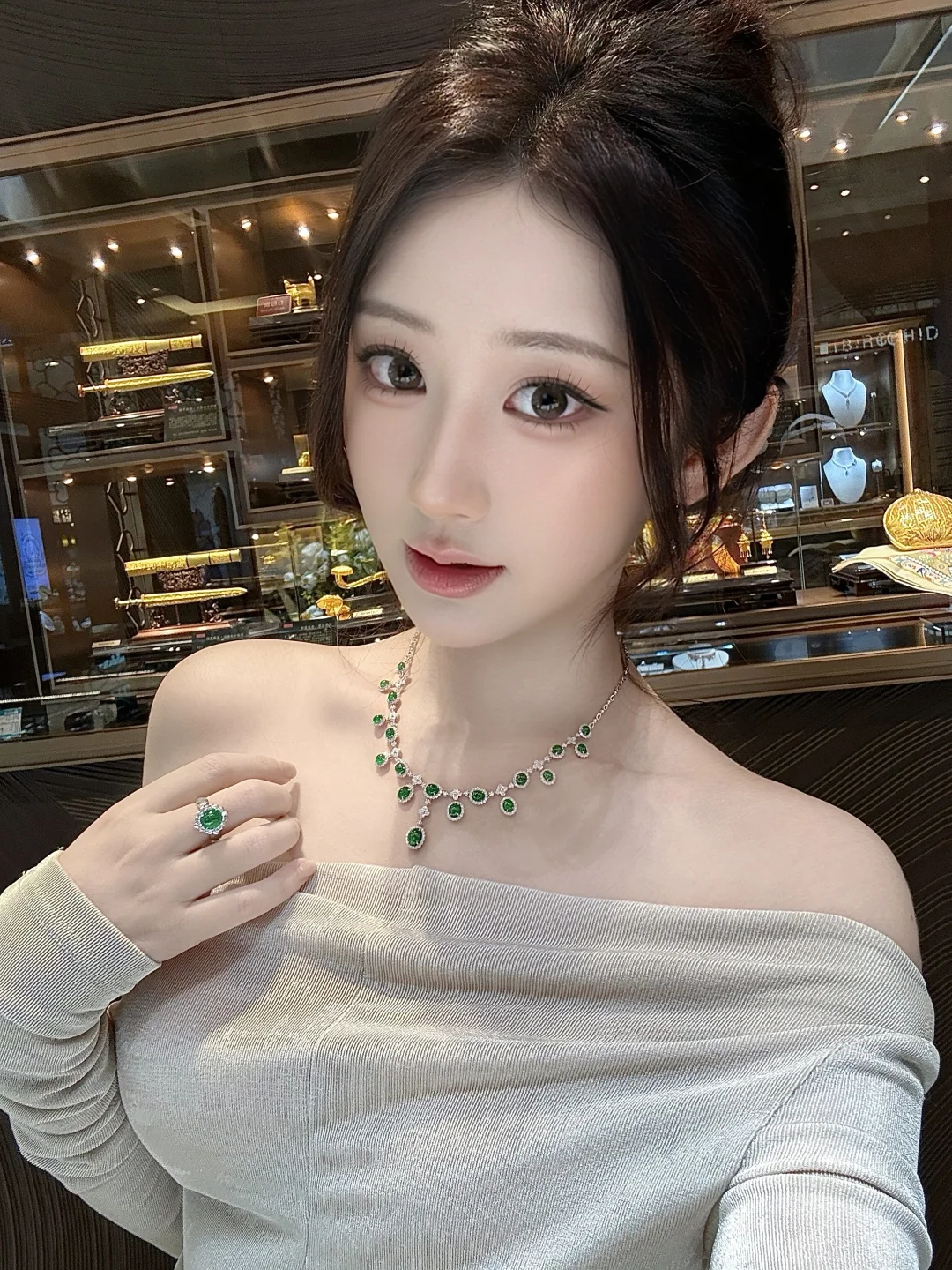 店员小姐姐超nice,跟我讲了好多关于翡翠种水的知识