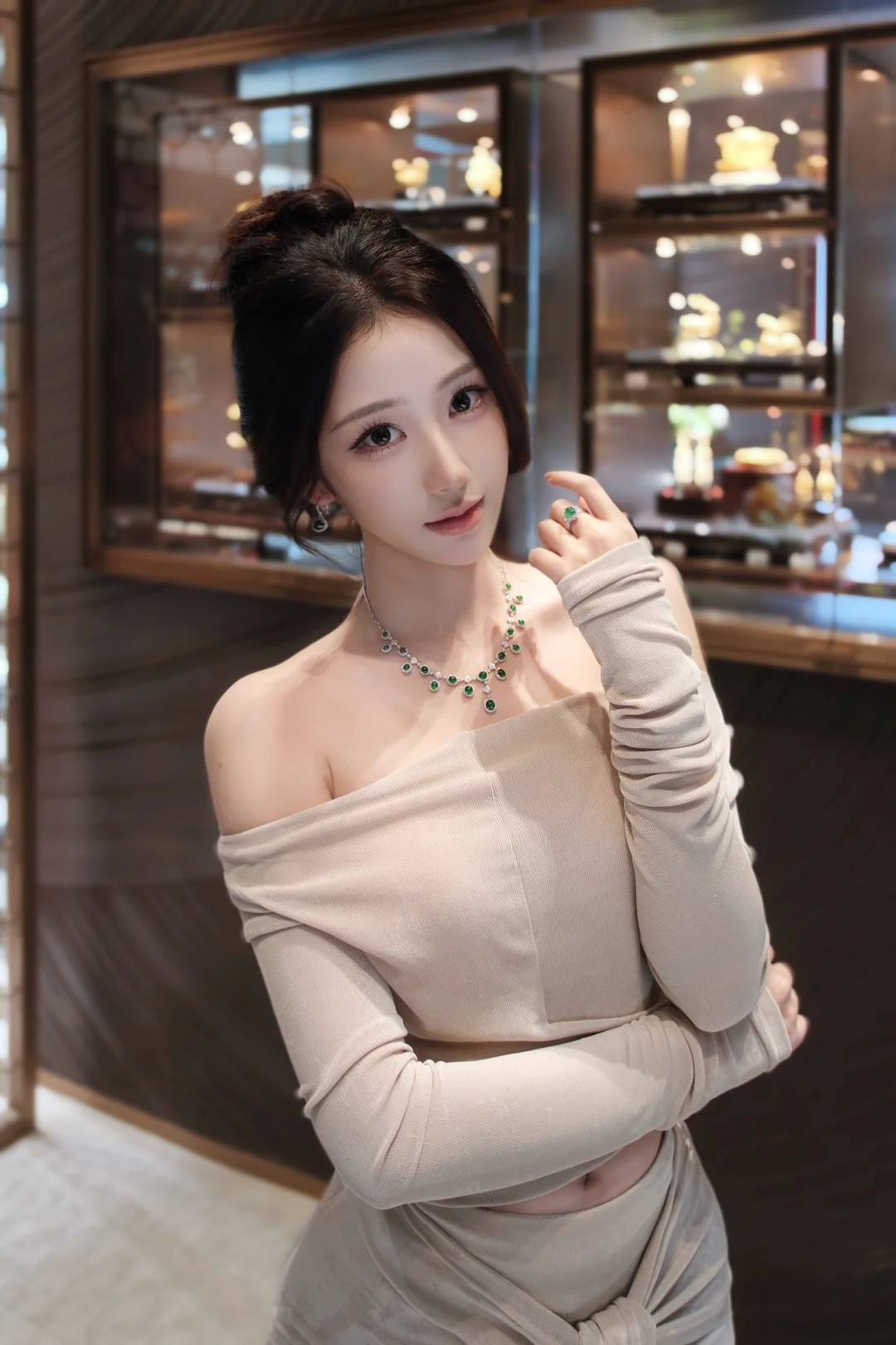 一套高冰翡翠,那种温润透彻的质感