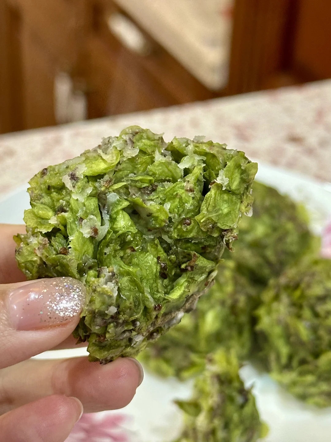 比想象中好吃!蒸出来是淡淡的清香,完全不会苦涩,糯糯软软中带着些微纤维感。既能轻轻松松吃进去蔬菜,又反而没纯面食那么噎人。这下能理解为什么榆钱窝窝是很多北方人的comfort food了。