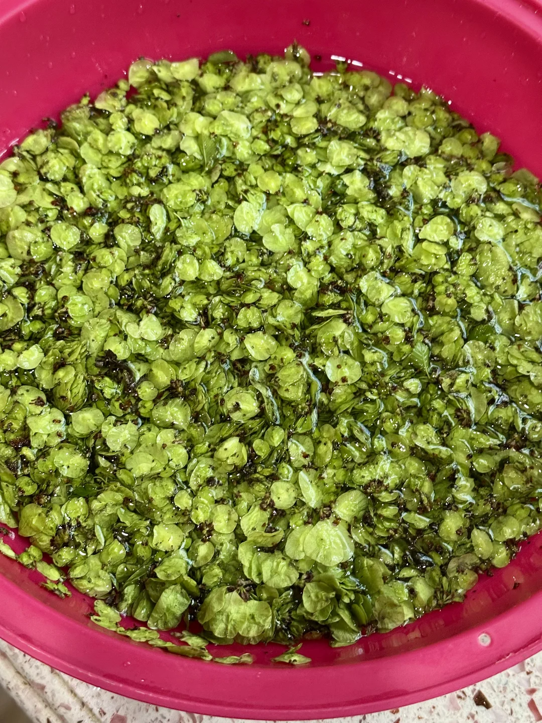 榆树钱清水洗净,淘两次去掉杂质,稍微留一点树籽不碍事,然后拧干水分;