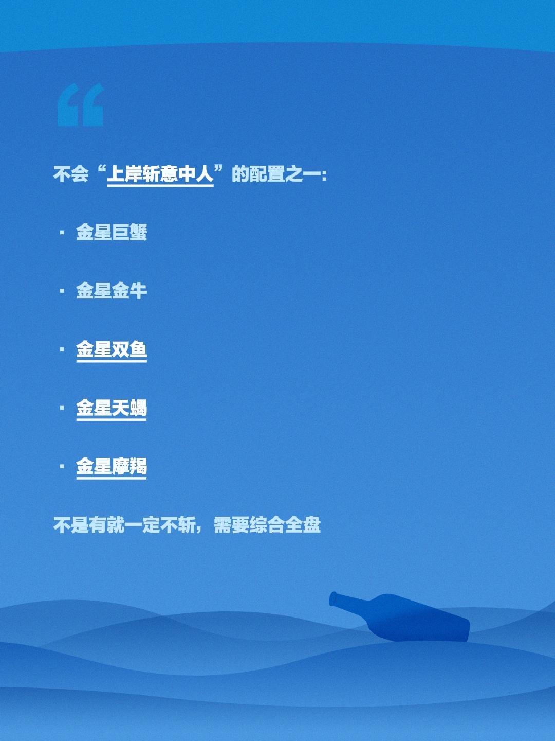 男人一定都是上岸先斩意中人的吗?不会“上岸斩意中人”的配置之一: • 金星巨蟹 • 金星金牛 • 金星双鱼 • 金星天蝎 • 金星摩羯 不是有就一定不斩,需要综合全盘