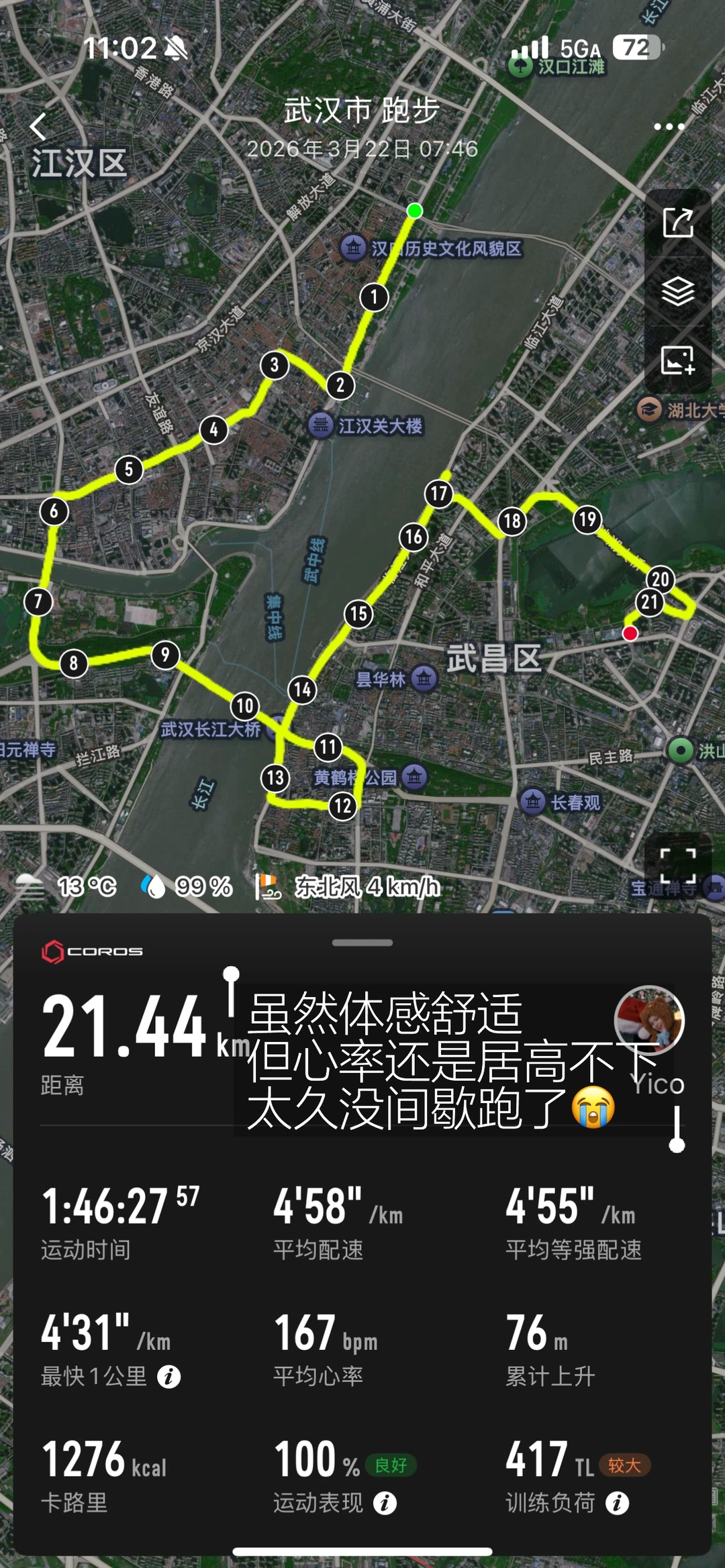 剩下的时间,因为也是第二年来武汉了,没有那么多欣喜,更多是在感受呼吸、步频、脚落地的节奏。